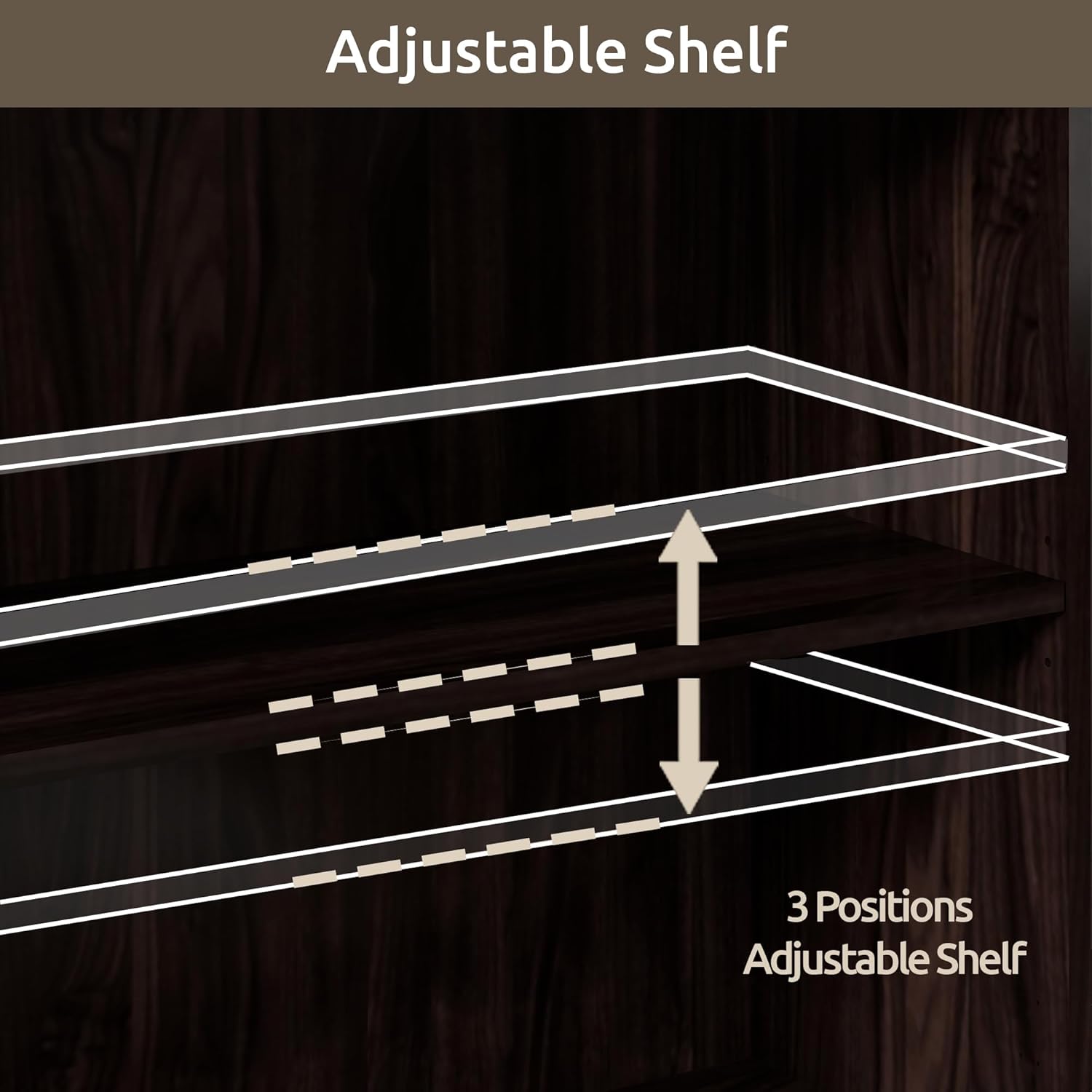 • Versatile Home Design​: This attractive and practical bookcase with doors features three open upper shelves with two adjustable boards, making it easy to display decorative items, books, figurines, etc., keeping your favorite things in plain sight. The bottom cabinet with double doors includes one adjustable shelf, allowing you to divide the storage space as needed, hide infrequently used items, prevent dust, and keep your home tidy.​