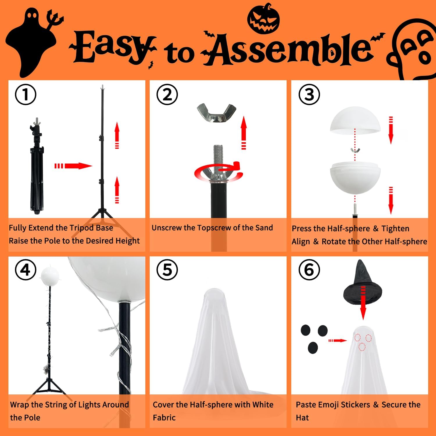 • ๐Ÿ‘ป2025 Upgrade Materials: Adpot high quality sturdy materials, including a hemispherical head, base, and support rod, ensuring better stability. It is also easy to disassemble and store after use for next year's Halloween use.