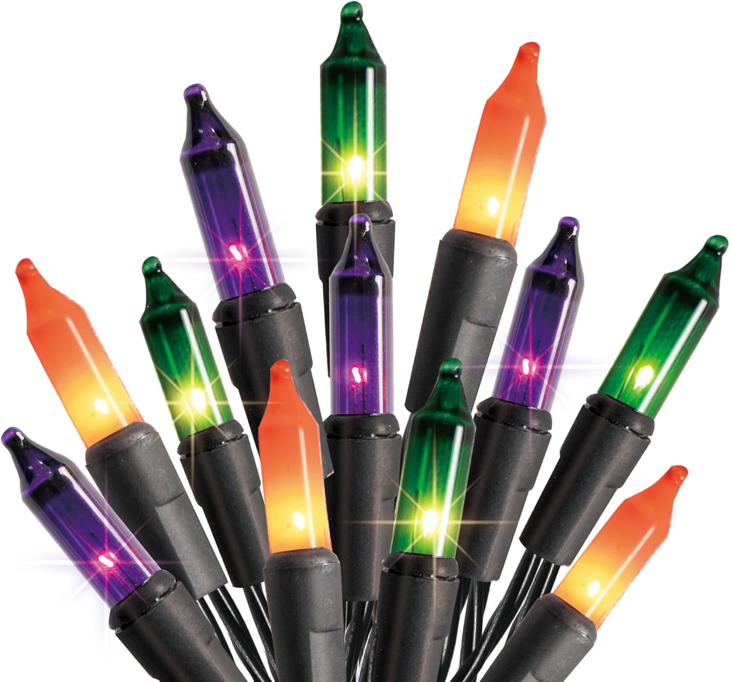Dazzle Bright Purple Orange and Green Halloween Lights, 20FT 100 Count Mini String Lights, Waterproof Halloween Decorations for Outdoor Indoor Patio Home Party Garden Yard Decor