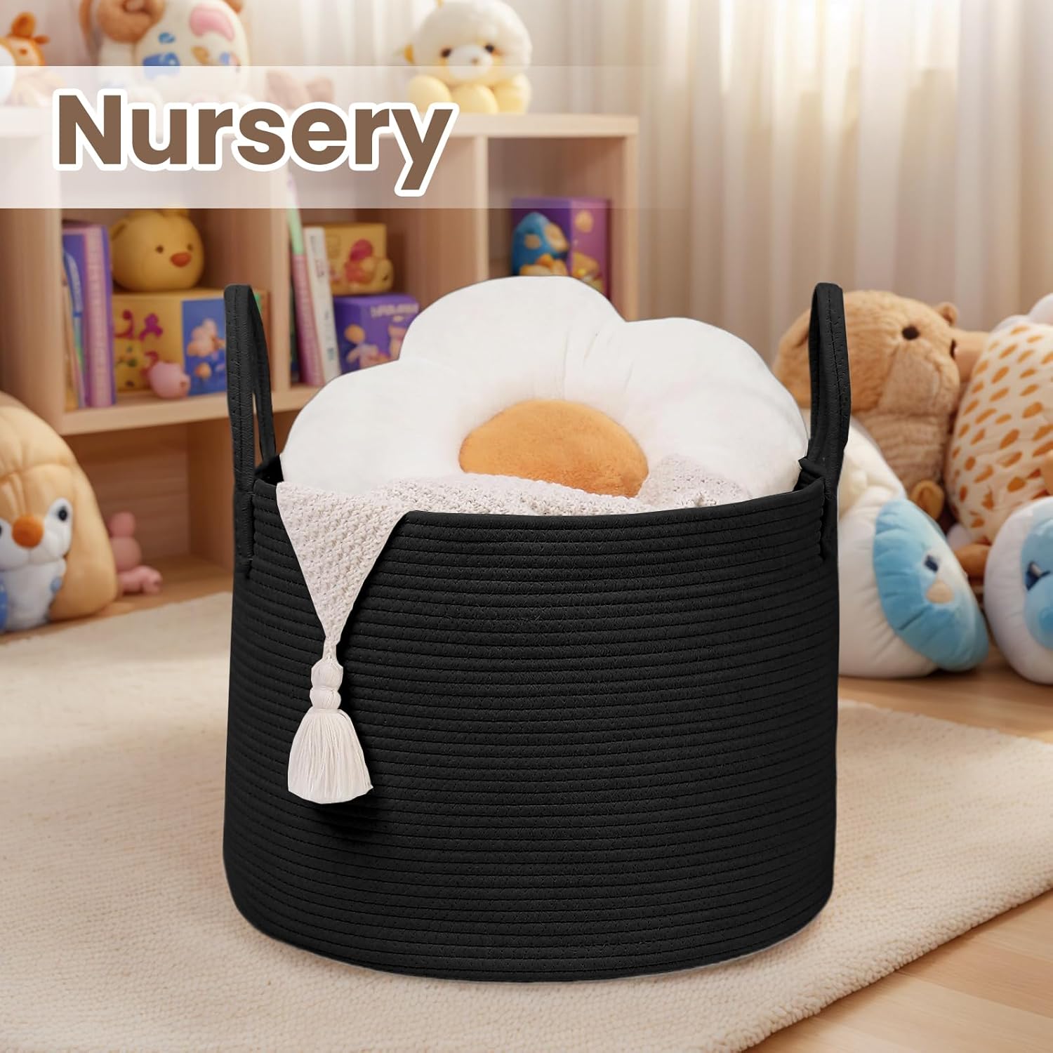 Woven Blanket Basket,65L Large Rope Storage Bin with Handles, Organizer for Blankets Toys Book and Clothes, Laundry Basket for Living Room Bedroom Nursery,Black