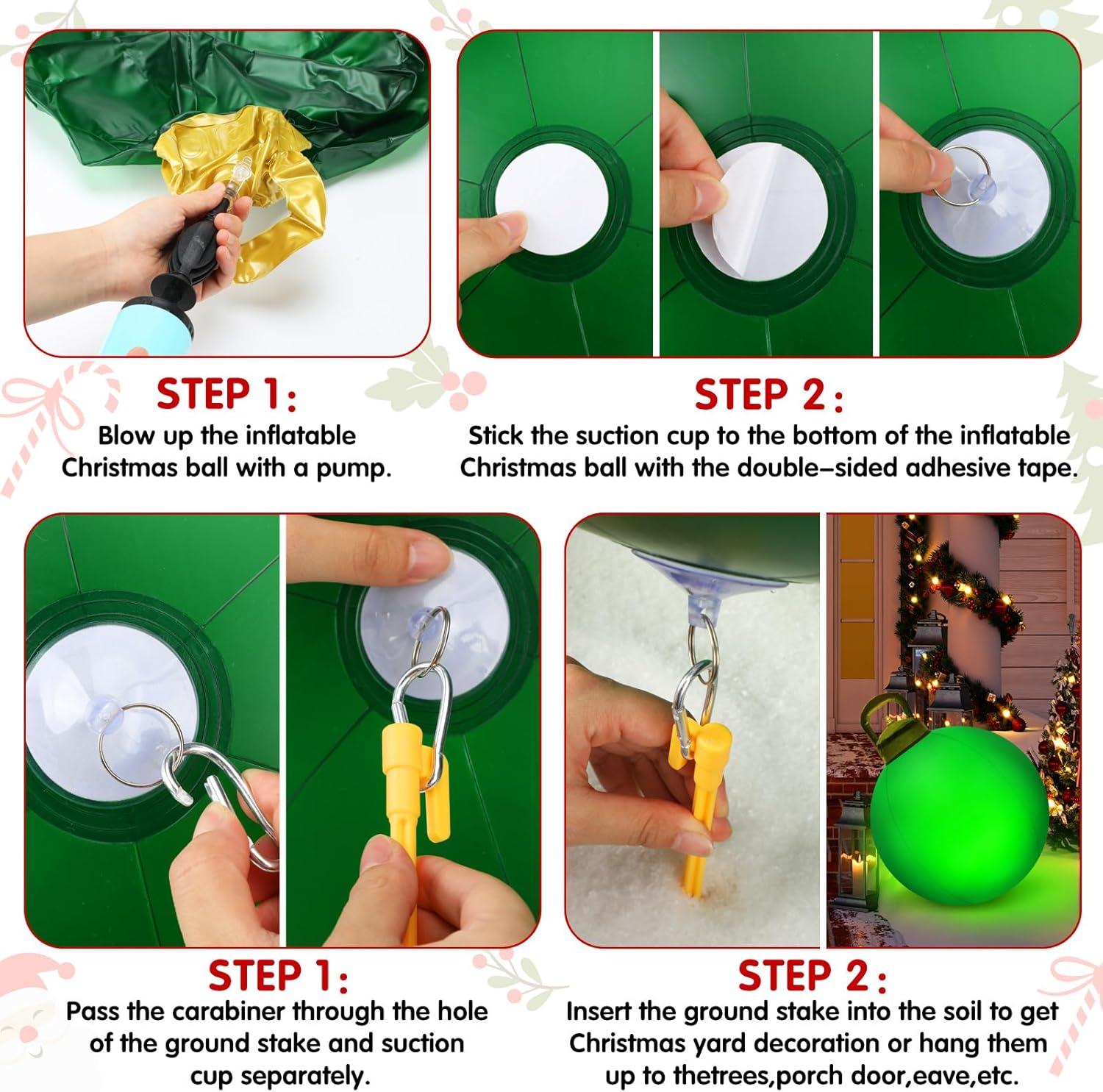 • Easy to Install: these large outdoor Christmas decorative balls are simple and convenient to install, no assembly is required, and you can use them after inflating (air pump not included); You can hang them in your garden, courtyard, porch or tree, etc.; You can use it to decorate anywhere you want; Deflate directly when not in use