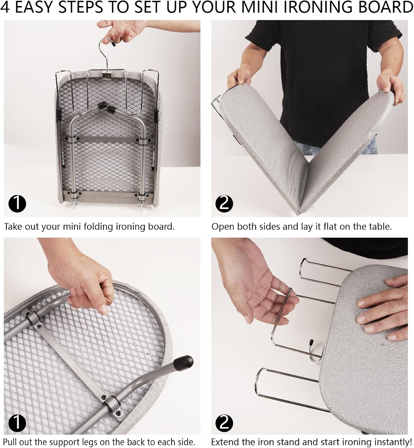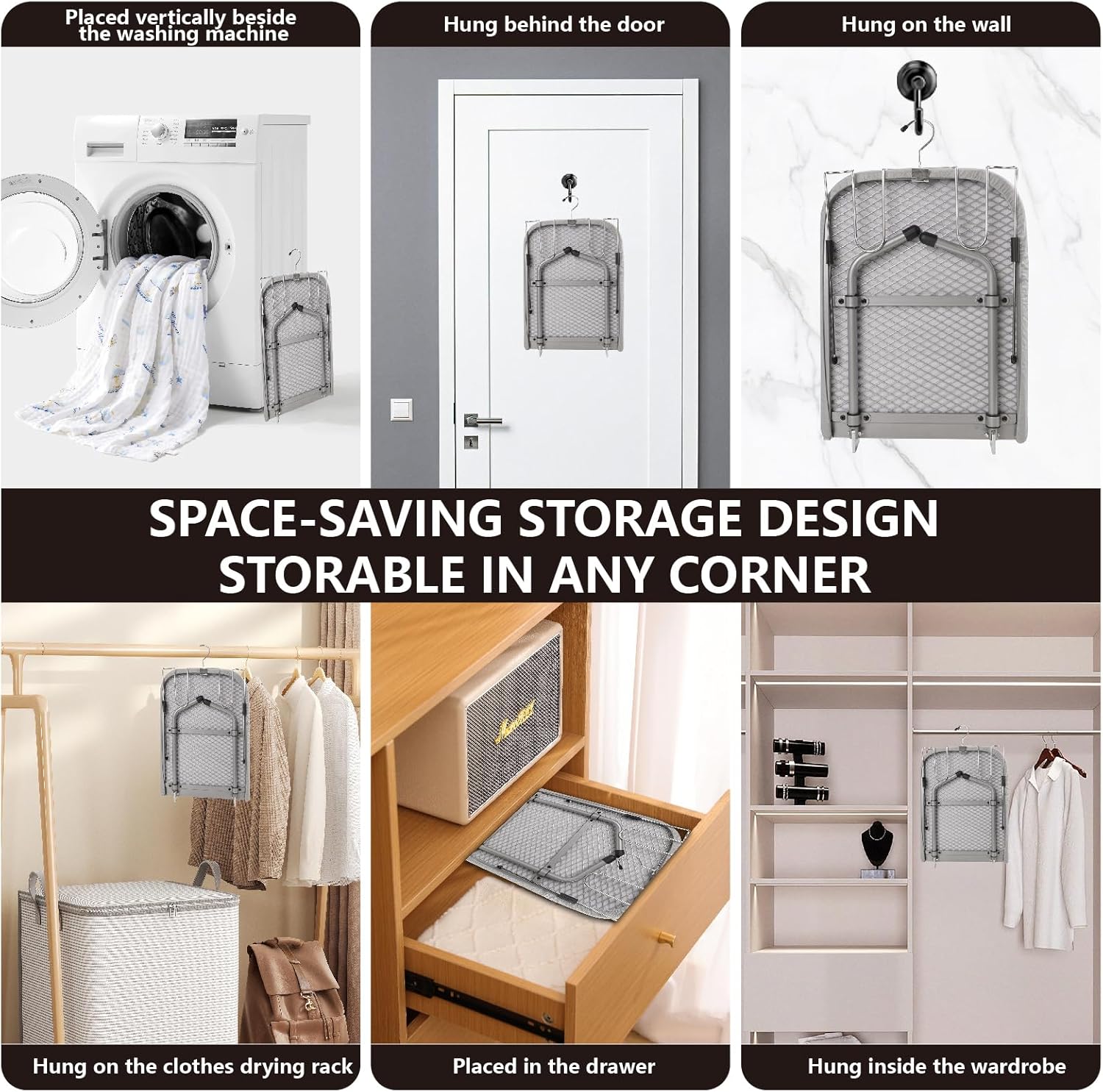 • 【Space-Saving & Ready to Use】This compact ironing board opens in seconds—no tricky slots or awkward locking mechanisms. Just unfold and start ironing. Stores almost anywhere, perfect for closets, behind doors, or under beds