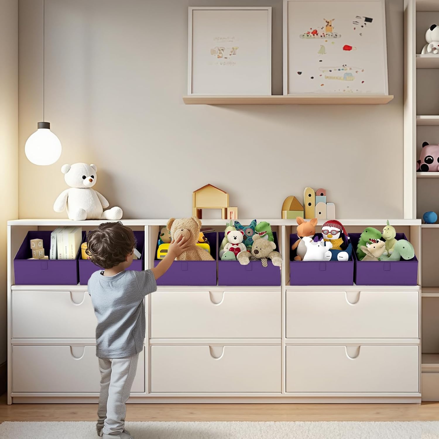 DIMJ Closet Storage Bins 8 Pack - Fabric Trapezoid Closet Organizer Bin, Foldable Storage Baskets for Shelves, Closet Shelf Organizer, Clothing Storage Box for Toys, Books, Towel, Clothes, Purple