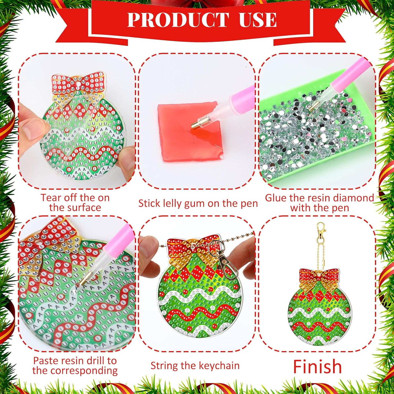 • Easy to Use: our Christmas delicate diamond keychains allow you to hang your keychains securely on your bag or purse, so you don't have to worry about losing them; In addition, trays allow you to arrange diamonds in order, while glue and drill pens help you stick diamonds in the right place
