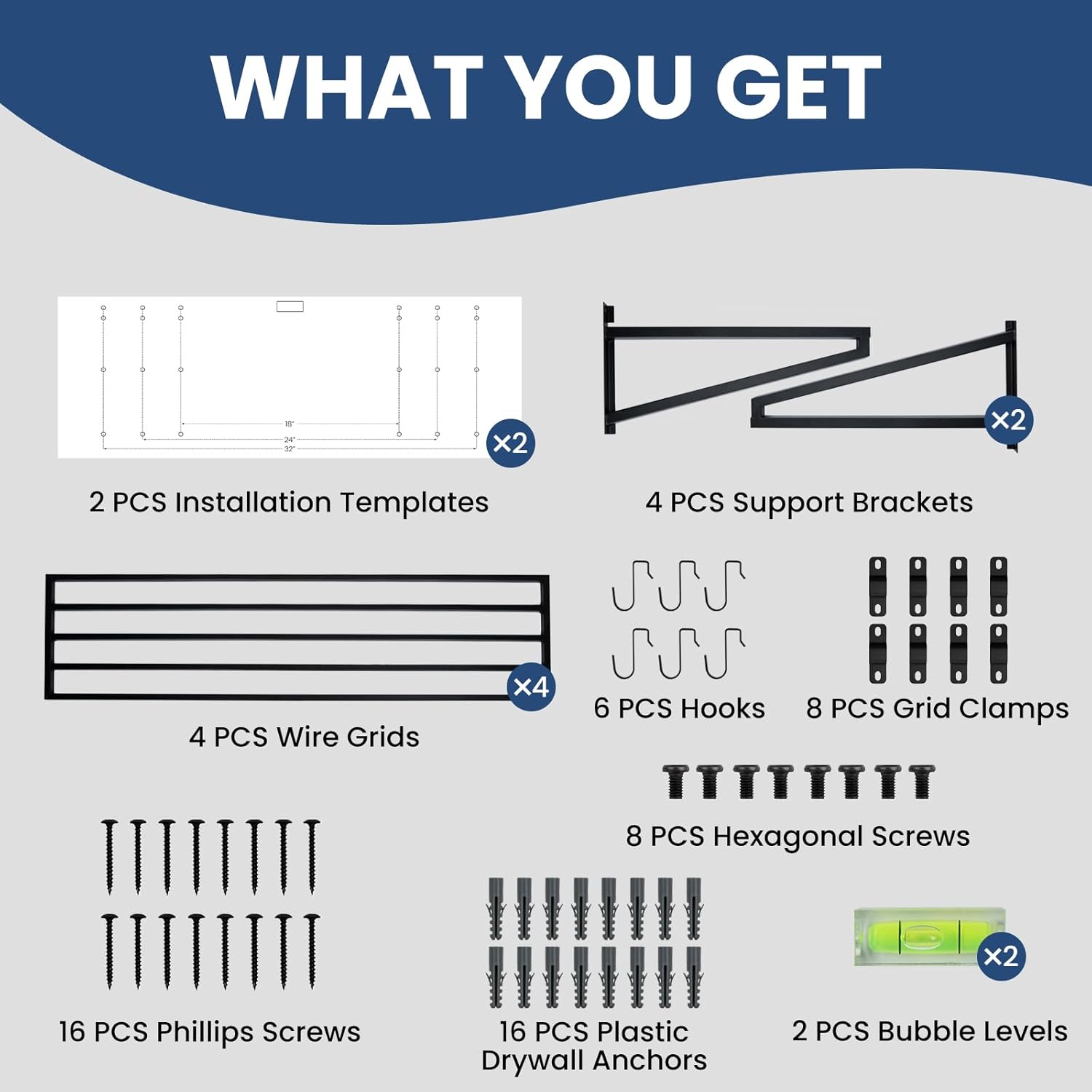 • HEAVY-DUTY LOAD CAPACITY: Each 2' x 4' wall shelf is designed to hold up to 250 lbs, providing a total of 500 lbs per set. Built from reinforced square-tube steel, these shelves easily handle heavy storage bins, toolboxes, camping gear, and bulky garage equipment without bending or sagging.