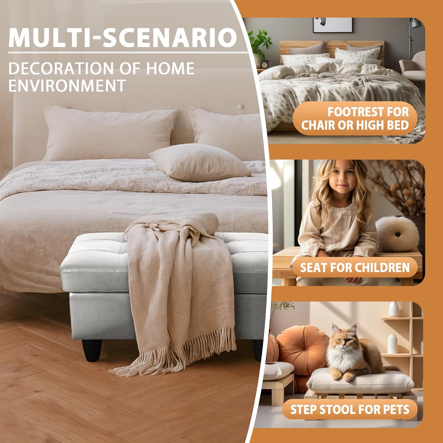• OTTOMAN BENCH: This versatile storage ottoman doubles as a comfortable bench, perfect for entryways, living rooms, or bedrooms. Designed to blend style with functionality, it provides both extra seating and hidden storage, making it a practical and stylish solution for any space.