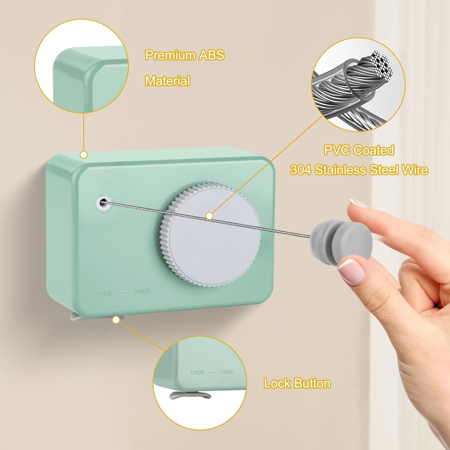 • The retractable laundry line is made of stainless steel wire and ABS plastic, with fine workmanship. It is compact and does not take up much space. It can be extended when needed and retracted when not in use.
