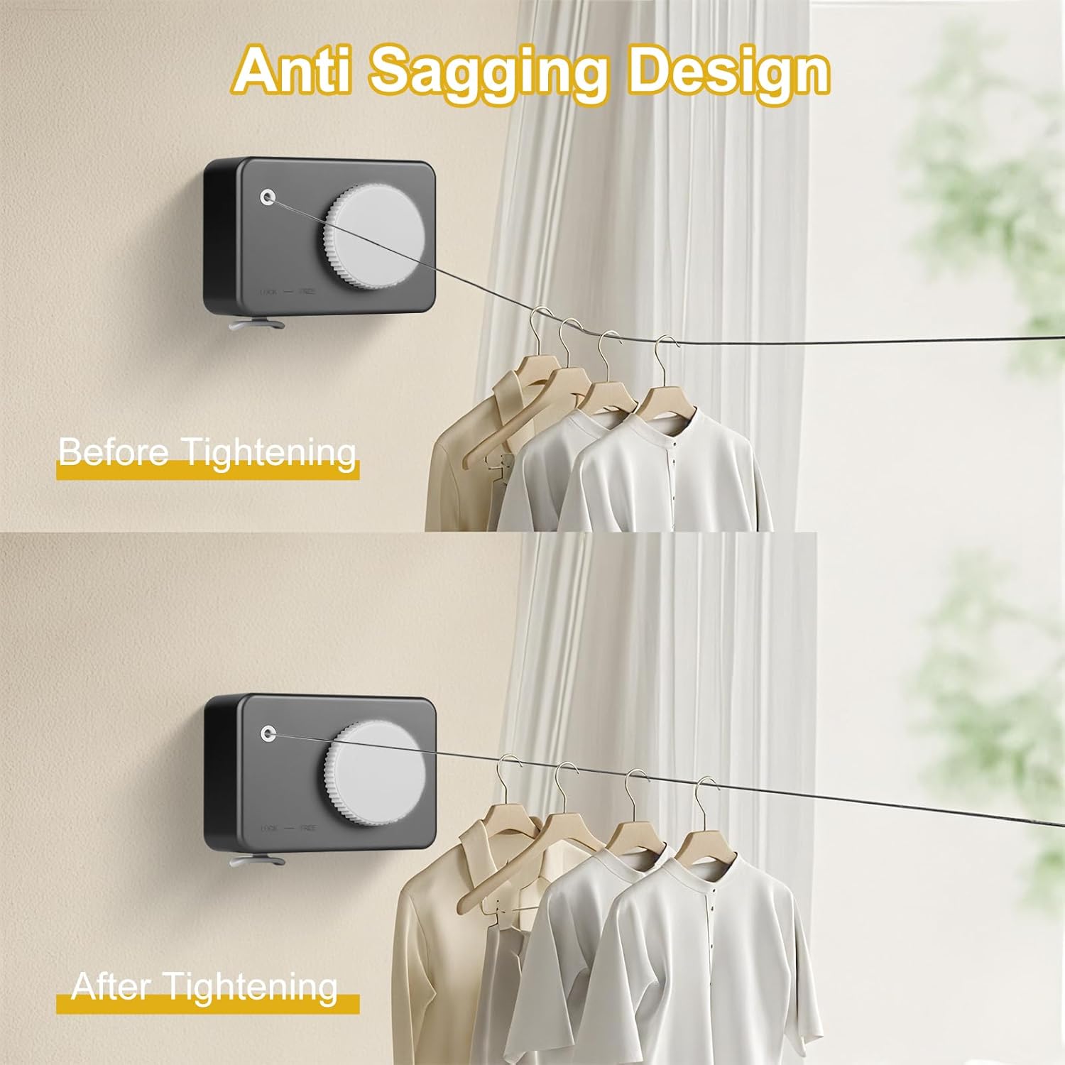 Retractable Clothesline Indoor/Outdoor, Anti-Sag for Drying Clothes Line Retracting Indoor/Outdoor, We Equipped This 13.8 Fts Laundry line Retractable with 4 Large Clips
