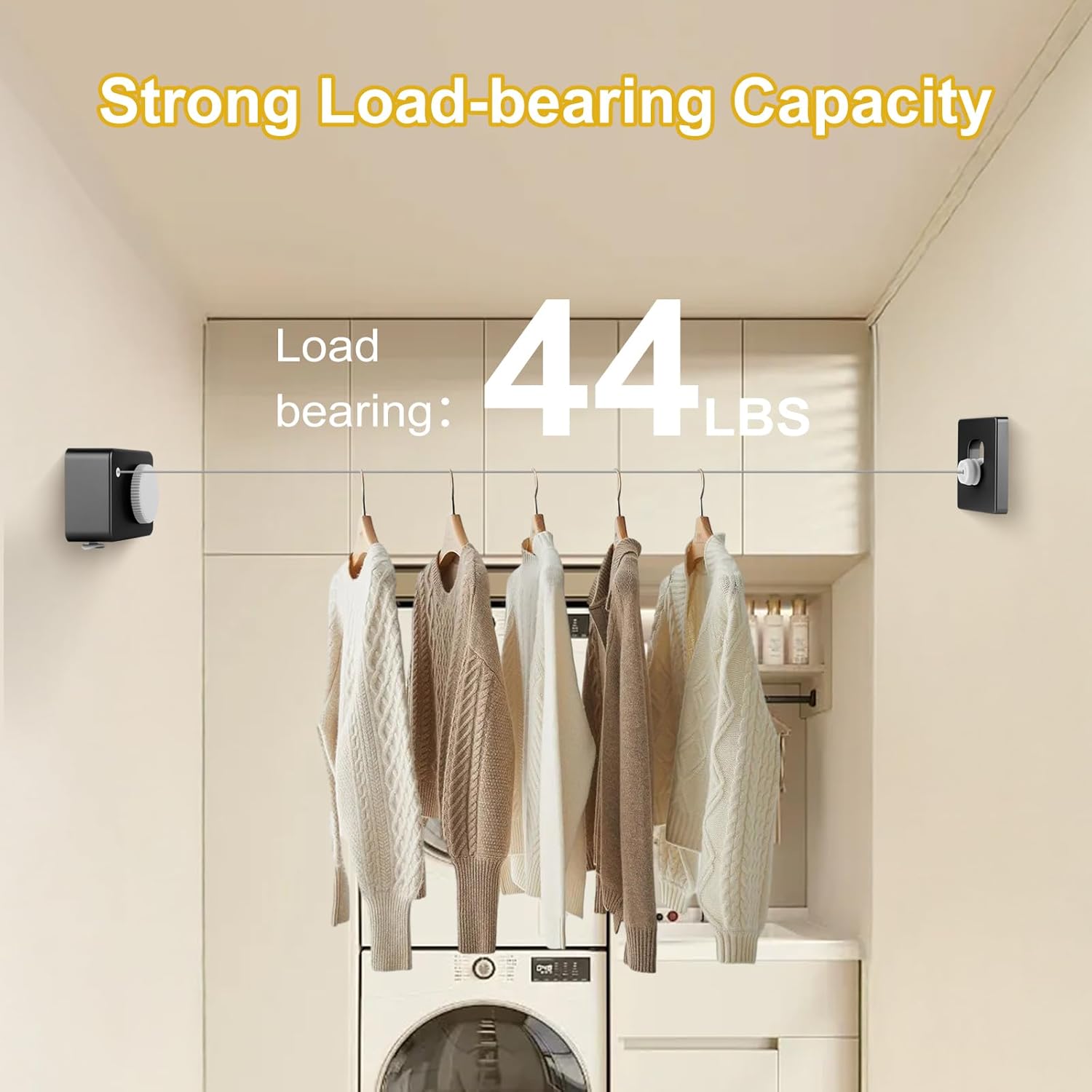 • The indoor/outdoor retractable clothesline has a maximum load capacity of 44 LBS and a length of 13.8 Fts, ensuring more space for drying clothes.