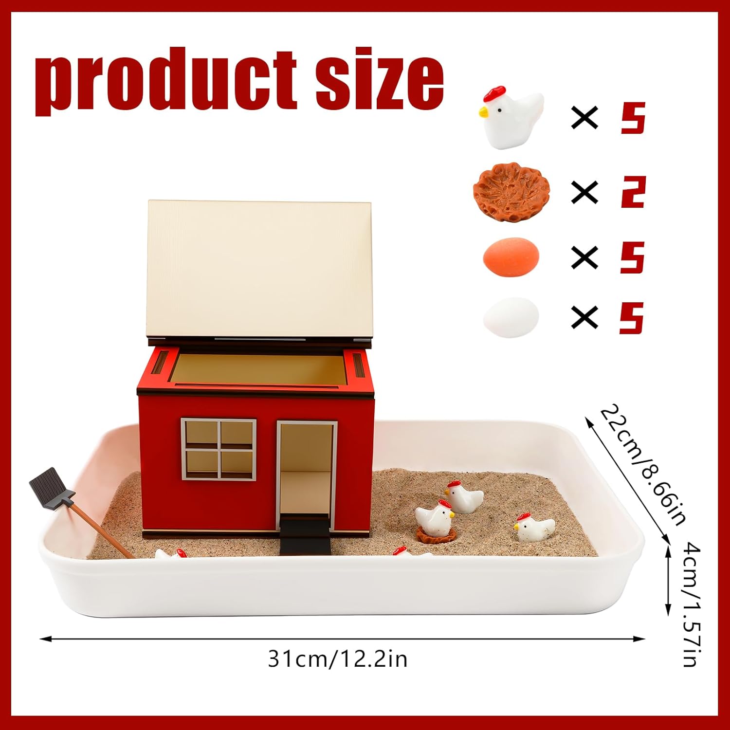 CypherX Chicken Zen Garden Sand Tray Therapy Kit with Miniature Chicken Coop, Hen Figurines Mini Zen Garden Kit Gift Office Desk Decor Fidget Stress Relief