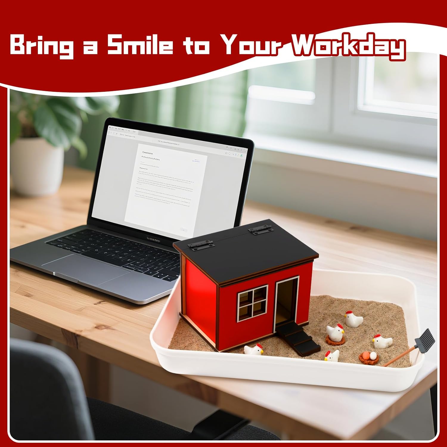 • Farm-Themed Zen Garden Set: Find a moment of calm in the chaos with this adorable farm-style zen garden! Featuring a buildable red wooden barn, detailed resin hens, eggs, a cozy nest, and a bag of fine sand, this mini farm scene brings peaceful rural vibes to your workspace. Whether you’re a farm lover or just need a break from stress, it’s a fun way to unwind and smile.