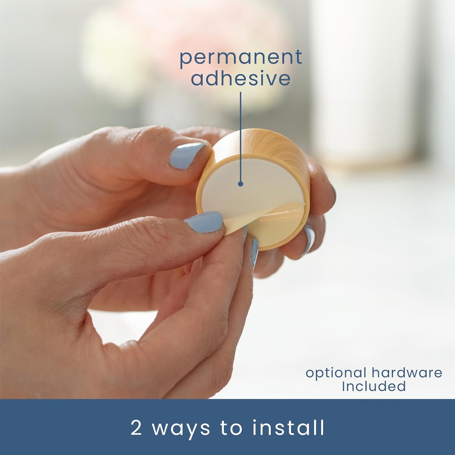 S&T INC. Round Adhesive Push Towel Hooks for Kitchen, Hand and Dish Towels, Plastic, Bamboo, 4 Pack