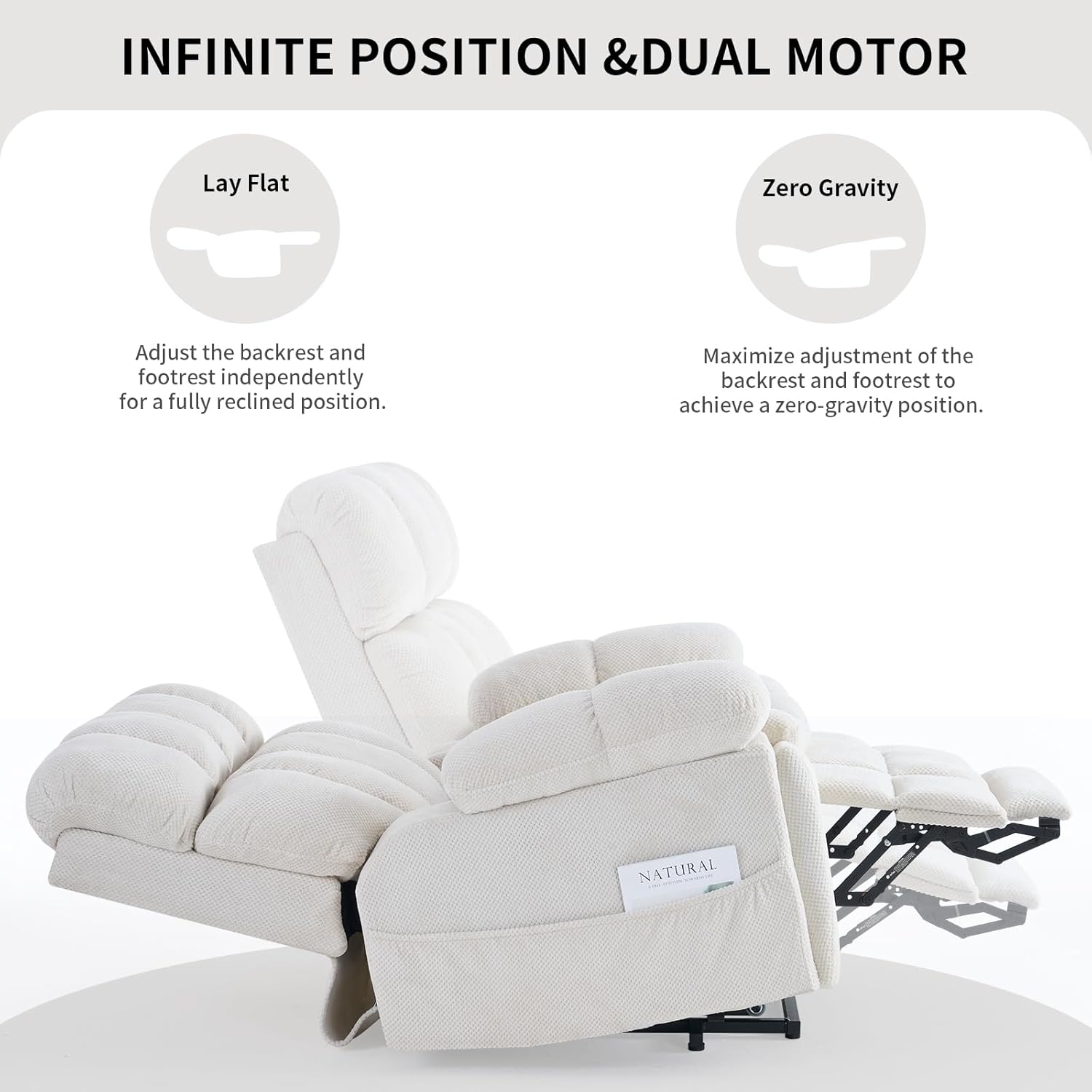 Dual Motor Power Lift Recliner Chair for Elderly,Electric Lift Chair with Adjustable Headrest, Heat and Massage,Lay Flat Recliner with Storage, Cup Holders,USB Ports,Type C,Zero Gravity, Beige
