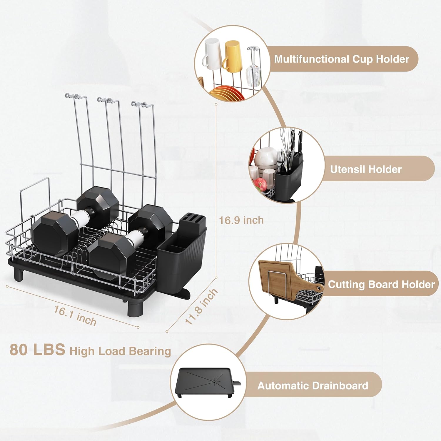• 🖤 Modern Gray Dish Drying Rack: Smudge-resistant gray dish drying rack blends seamlessly. Easy-wipe finish stays clean—no stains, no scrubbing