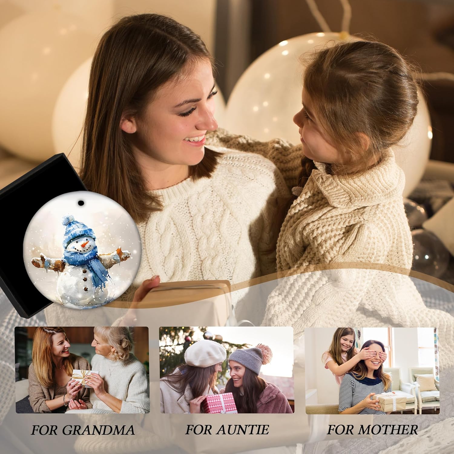 Christmas Snowman Ceramic Ornament Gifts, Winter Christmas Blue Snowman Decorative Hanging Ornaments for Xmas Tree Holiday Party Decoration, Winter Xmas Tree Decorations