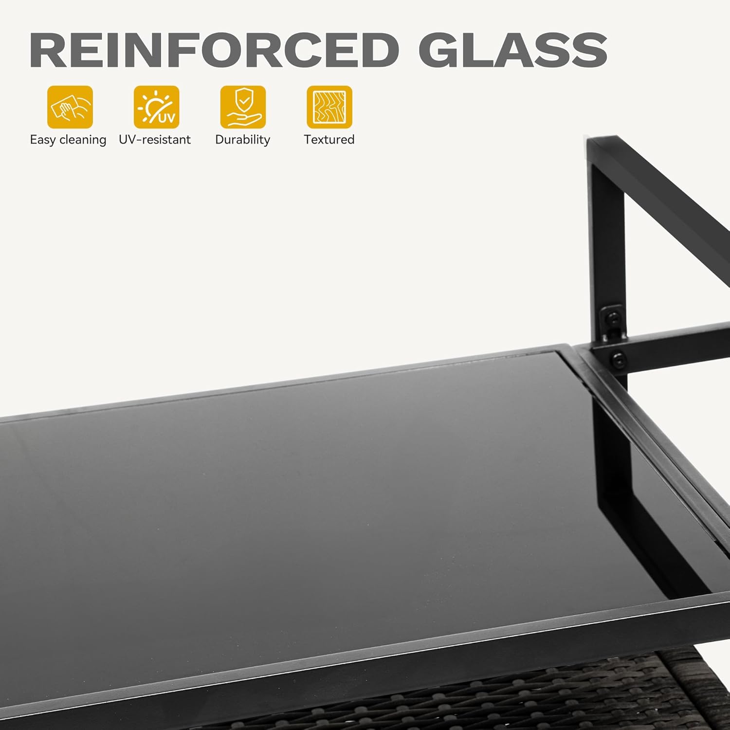 • Sleek glass tabletop: The glass surface of the table is easy to maintain and brings a modern touch to the cart's aesthetic; Sleek appearance elevates your outdoor gathering experience