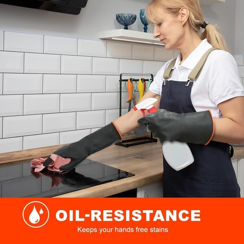 • Multiple Length Options:Available in 14", 18", and 22" lengths to suit various applications, providing tailored protection for forearms, elbows, and full arms., our oversized rubber gloves feature extended cuffs that shield your wrists and forearms from splashes, abrasives, and hazardous chemicals. Designed to accommodate various hand sizes, these gloves offer an exceptional fit while providing comfort and heat resistance for prolonged use.