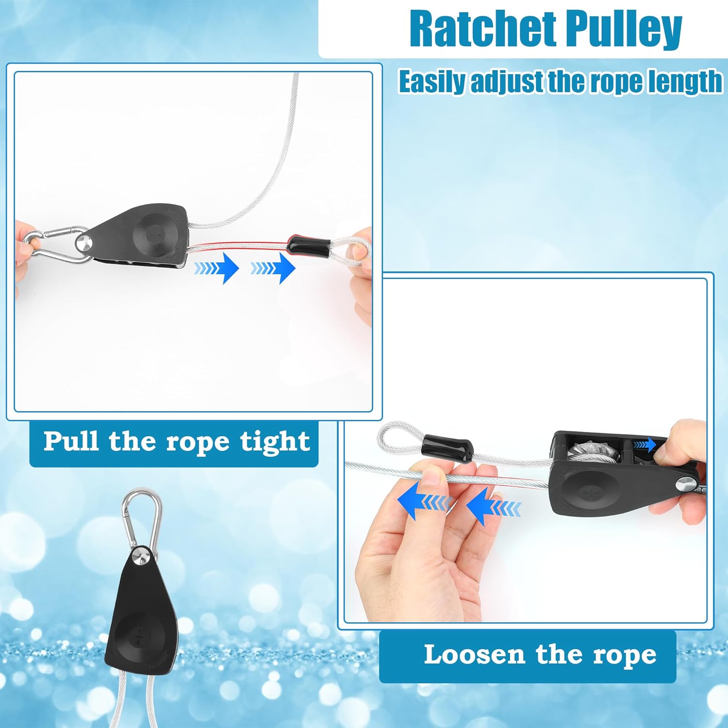 • 【Ratchet Pulley】: The ratchet pulley is easy to operate and adjusts the length of the travel clothesline cord. Pull the rope outward at one end to shorten it, and press the spring underneath the buckle to release it