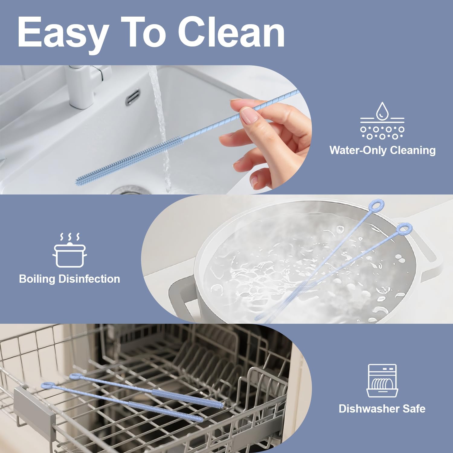 • Safe & Durable Silicone Bristles: Made from high-quality, food-grade silicone, BPA Free, our straw brush are gentle on straws (won't scratch) yet tough on buildup. The flexible Handle bend to scour every curve and corner for a thorough clean, and won't shed or break like bristle brushes.