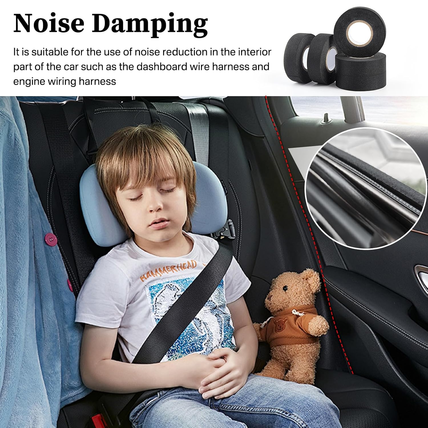 Wire Harness Tape, 0.98"x 49FT 5 Rolls, Wiring Loom Harness, Self-Adhesive Felt Cloth Electrical Tape for Automotive Engines, Harness Wrap Protection,Noise Dampening and Cable Protection,Black