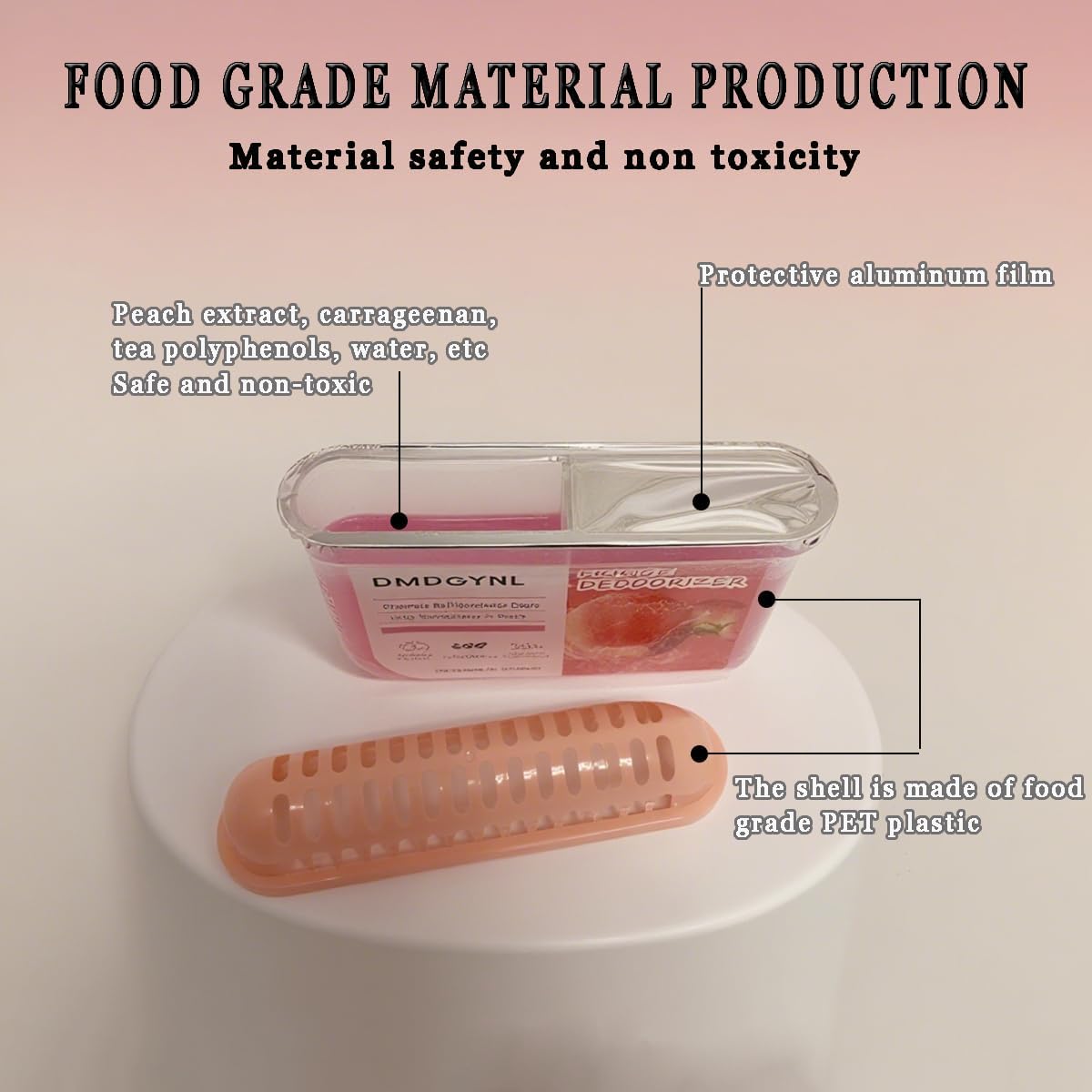 • KEEP FOOD FRESH: The refrigerator deodorizer contains peach extract, which can effectively decompose odor molecules such as ammonia, NH3, and H2S. Meanwhile, our refrigerator deodorizer is made of safe materials, and the active ingredient of the deodorizer is food-grade carrageenan. So please feel free to use it, the food in the refrigerator is healthy and safe.