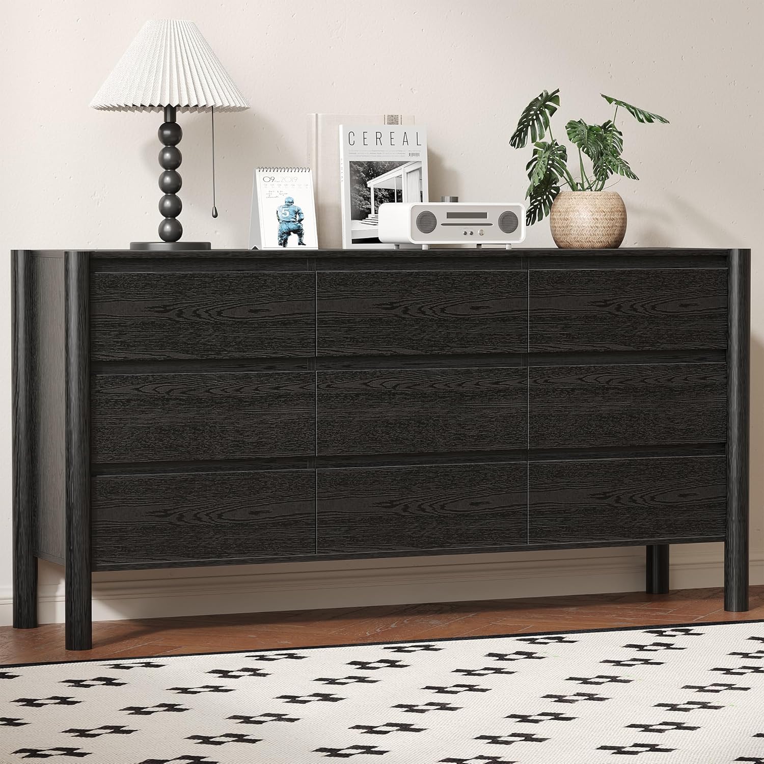 • 【Engineering for Lifetime Stability】Dresser chest of drawers with high-density engineered board + 4 solid wood round legs to disperse pressure, paired with anti-tipping hardware package, builds a solid safety line for families with children or pets.