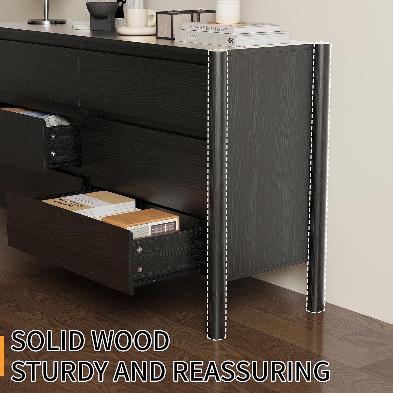 • 【Engineering for Lifetime Stability】Dresser chest of drawers with high-density engineered board + 4 solid wood round legs to disperse pressure, paired with anti-tipping hardware package, builds a solid safety line for families with children or pets.