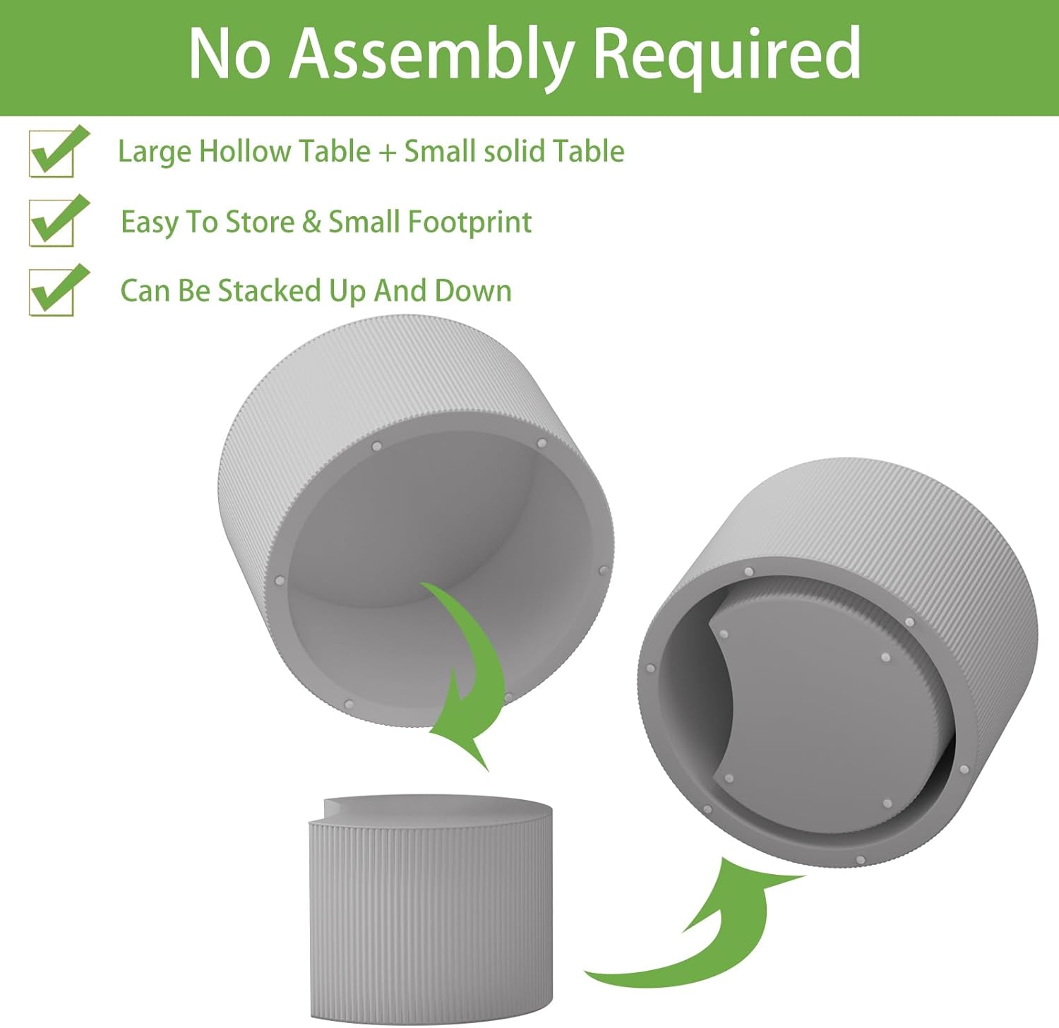 • No Assembly Required: Although the circular coffee tables require no assembly, their design also considers ease of transportation. The nesting design allows the two circular end tables to fit within each other, reducing the space usage, making the circular side tables easier to move. This is a significant convenience for those who are not adept at or do not enjoy assembling furniture.