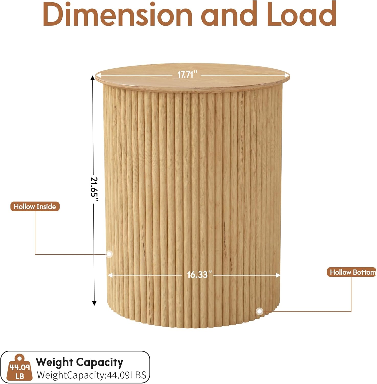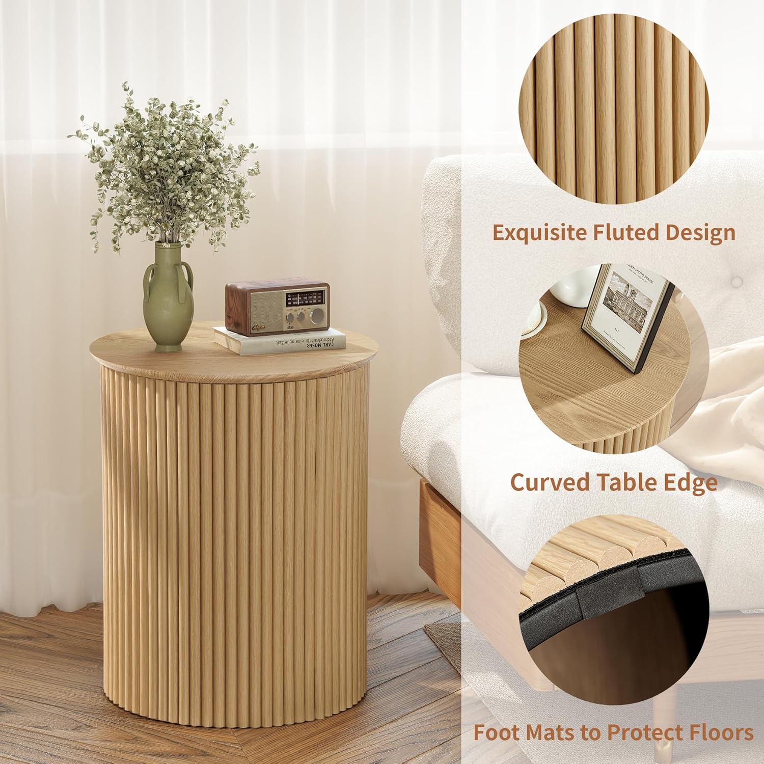 AVZEAR Small Round Side Table Fluted Night Stand Set of 2, Modern Boho End Table with Storage, 17.7" Circle Bedside Tables Wood Nightstands for Small Spaces, Living Room, Bedroom (Natural)