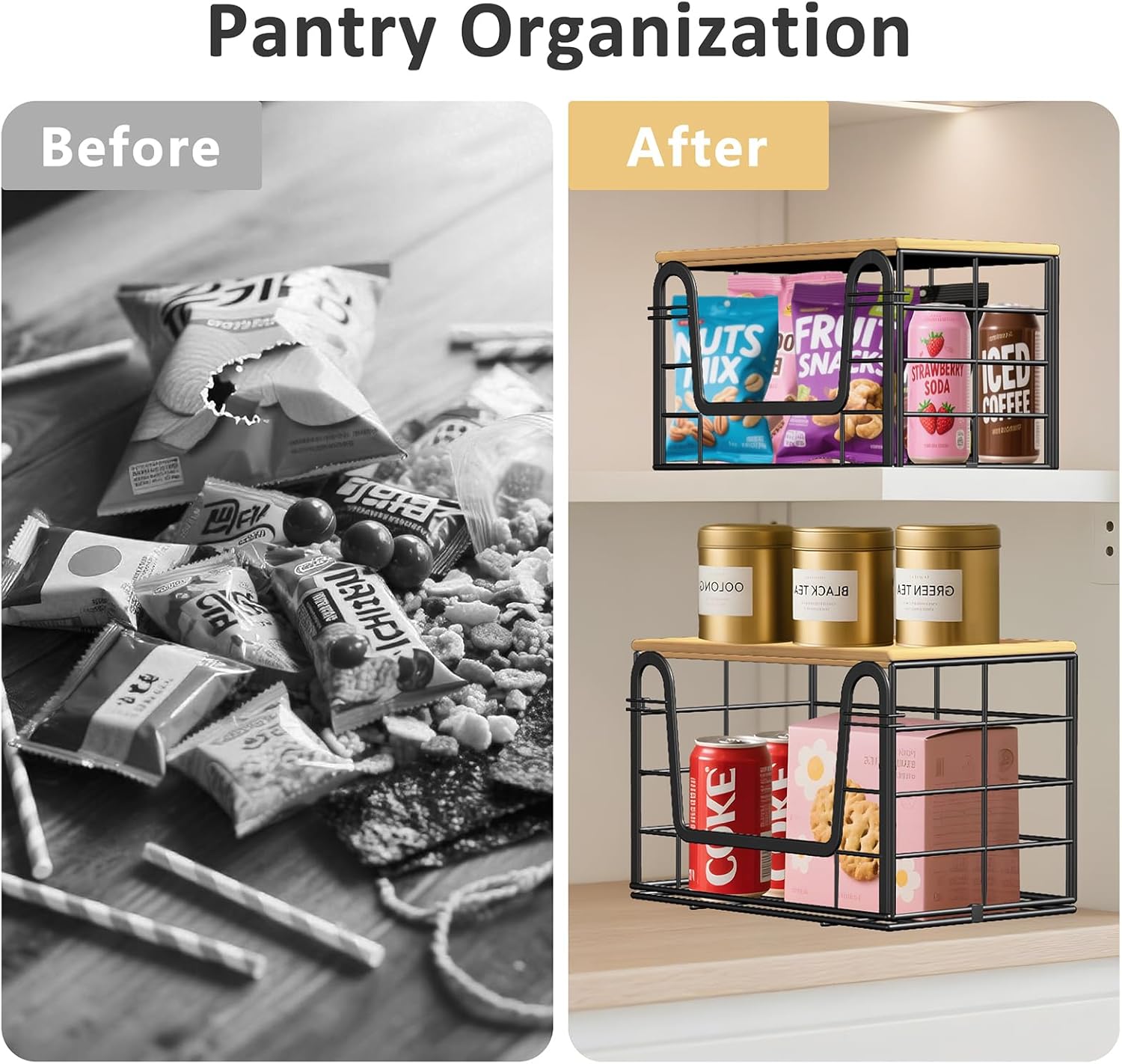 • Space Saving: The front features a wide opening, making item access even more convenient. Its stackable design maximizes vertical space utilization. The top is paired with a bamboo lid that not only enhances the overall aesthetic but also serves as additional storage space. Whether used for trash bag storage or general organization, it keeps kitchens/cabinets neat and organized, effortlessly achieving efficient space utilization