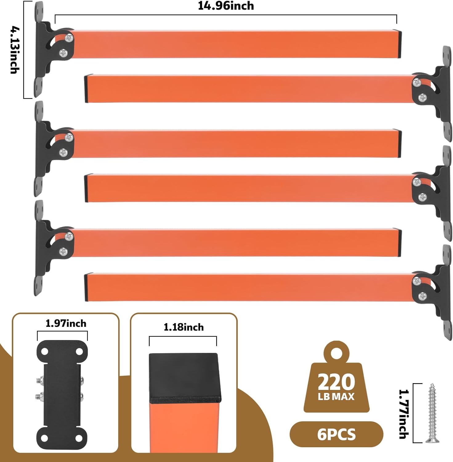 • 【Personalized and Versatile Storage Rack】: Newly designed adjustable angle 90 ° 75 ° Wall Mount Wood Organizer and Lumber Storage Metal Rack.90°Mount Wood Organizer are used to place long objects like lumber, pipes, gutters, or skis. 75 ° Wood Organizer and Lumber Storage Metal Rack Used in water pipes, steel pipes, ladders, and other products that are easy to roll. Capable of being securely locked at an appropriate angle