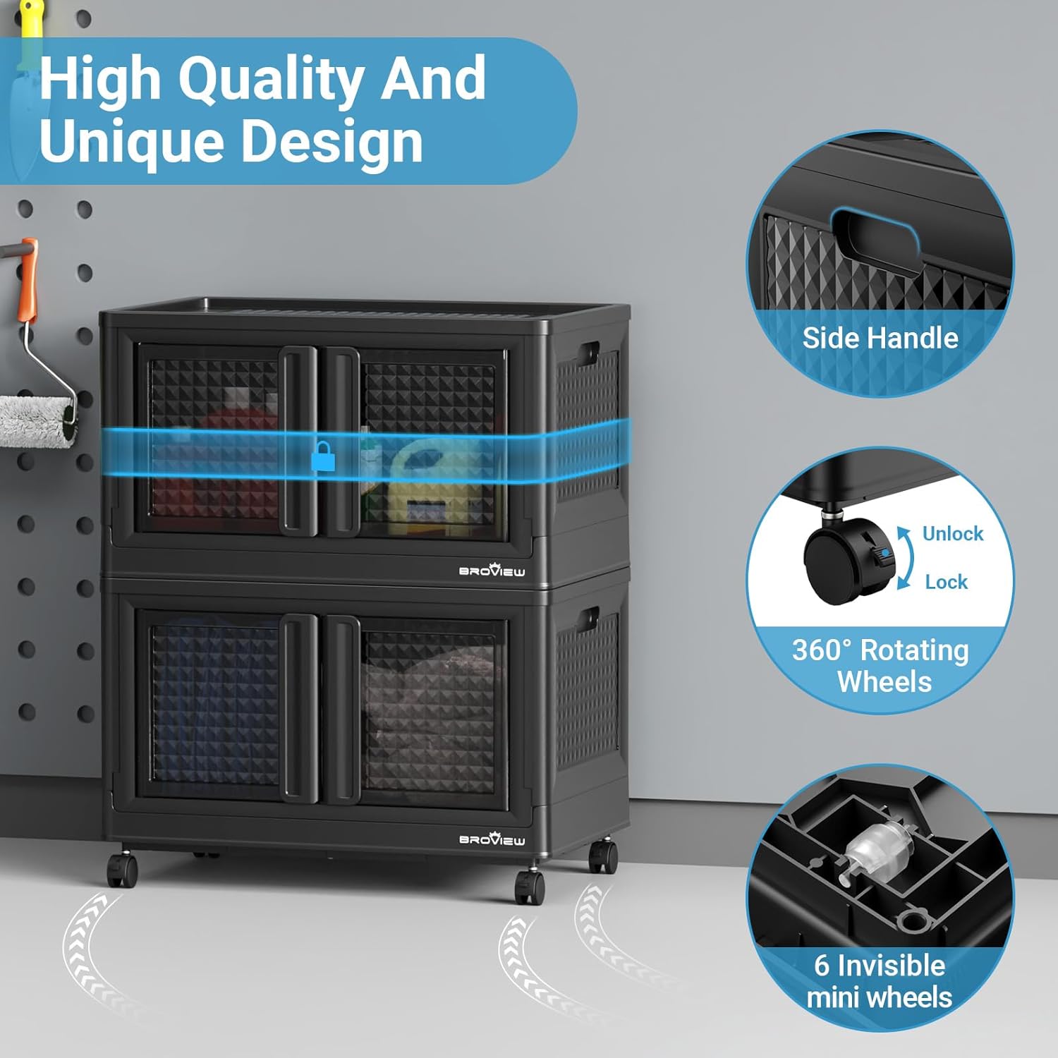 • 【Lockable Doors and 360° Rolling Wheels】The storage box offers two options: front-opening doors or top-opening doors. The door can be easily opened or locked by simply rotating 90°. The locking design effectively isolates pets such as dogs and cats from intrusion. The 4x 360-degree rotating wheels all have fixed functions and can be easily moved by releasing the valve, making them friendly to the elderly and young.