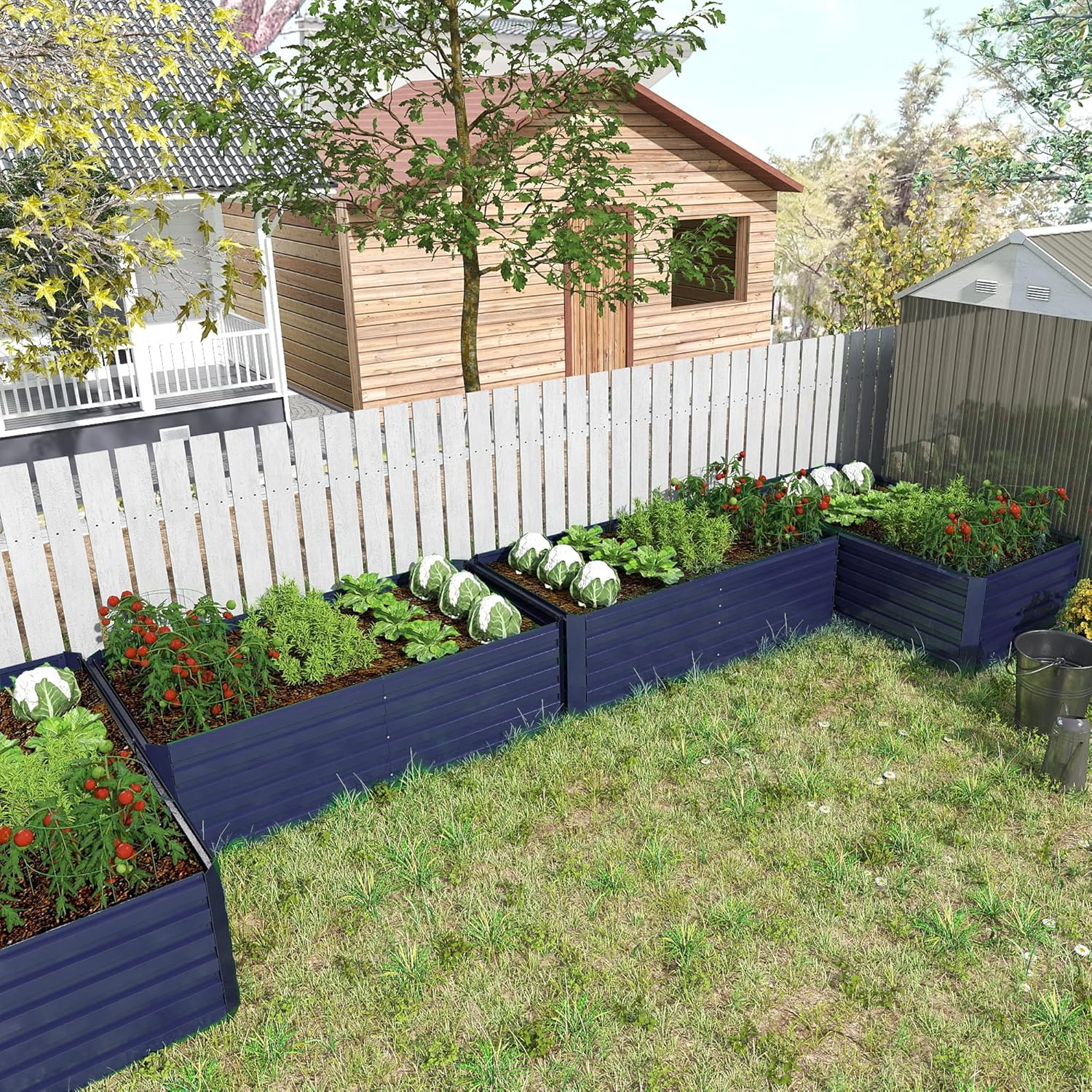 8x4x2 ft Outdoor Raised Garden Bed, Large Metal Planter Raised Beds, Planters for Outdoor Plants for Vegetables, Flowers, Herbs, Fruits, and Succulents.(2 Pcs,Blue)