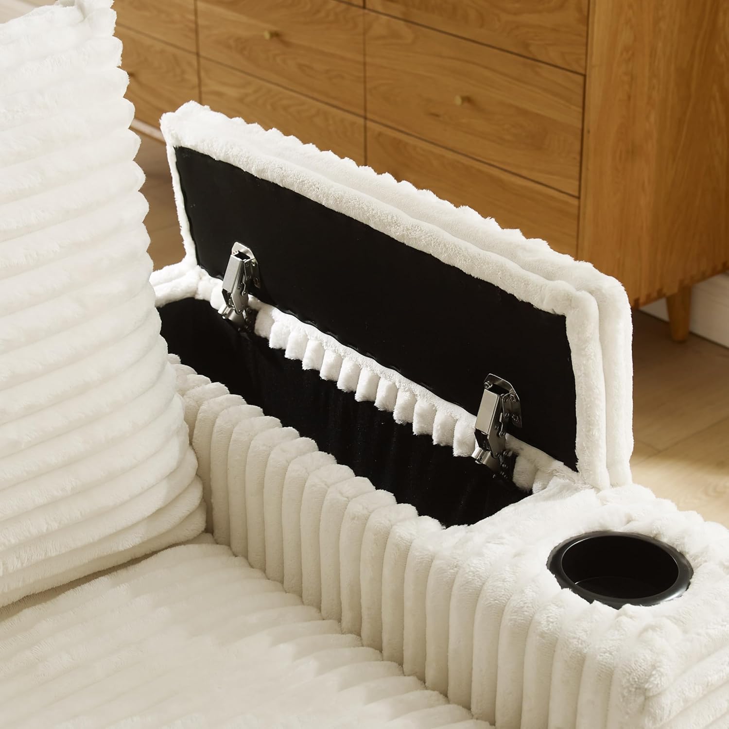 Modular Sectional Sofa Couch, Plush Corduroy Fabric Sectional Couches for Living Room with USB Charging Ports, Phone Holders, and Multi-Functional Storage Armrests (White, 4set+2ottoman)