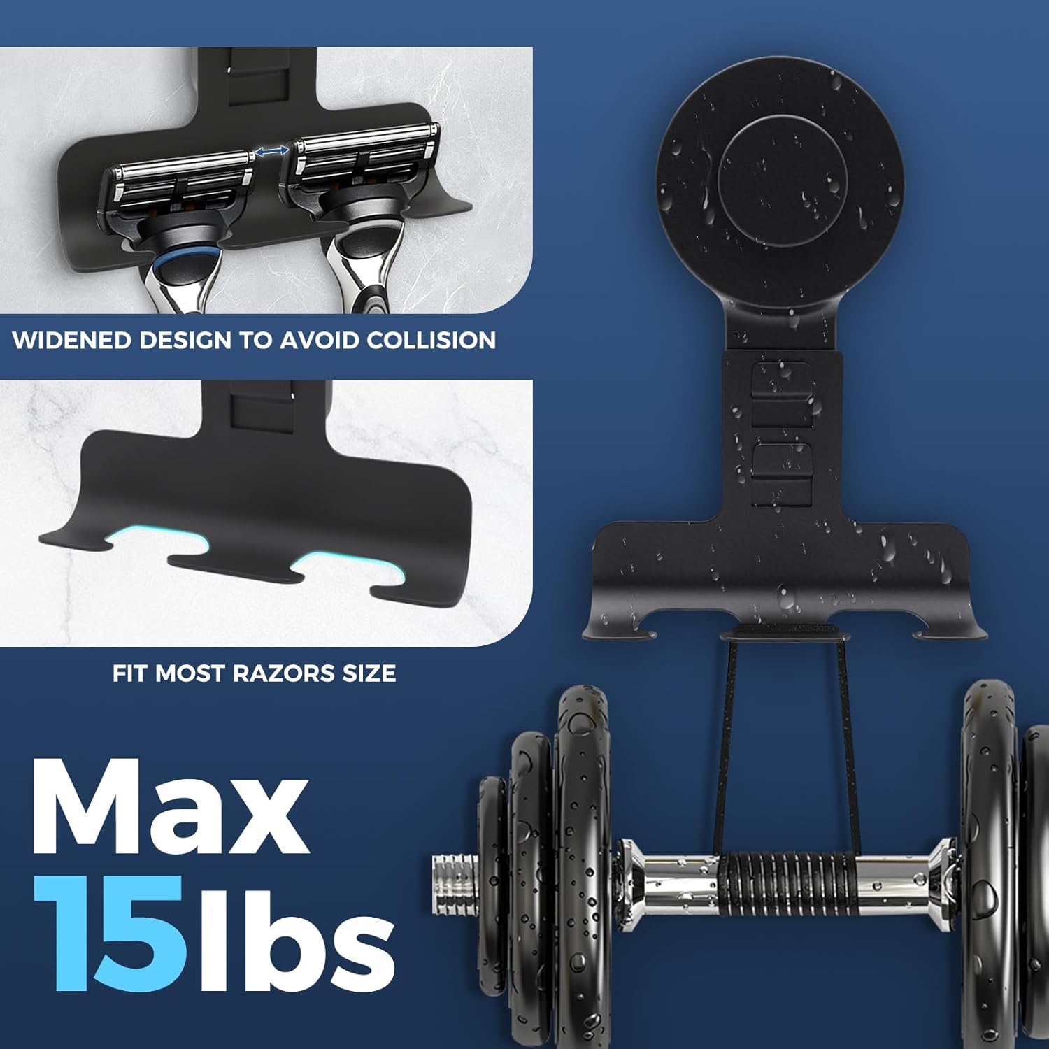 • 【DOUBLE HOOKS, ZERO INSTALL STRESS】Mount both shower razor holders for wall in seconds:Press→Twist→Lock.No tools/damage on tiles & glass