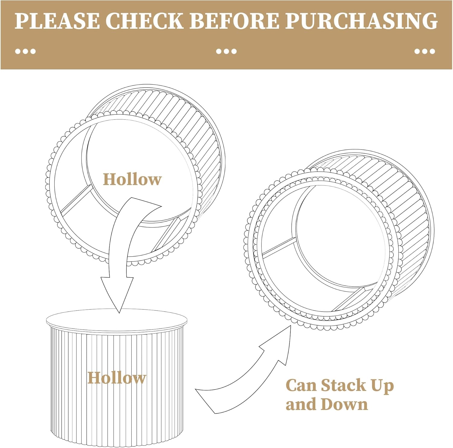 • Space-Saving Nesting Coffee Table: Perfect for small spaces! The set includes two sizes: - one Coffee table (Φ 18.9 x H 14.96 inch) and one side table (Ø 14.96 x H 11.81 inch). Stack them effortlessly using the hollow base for a compact footprint, or separate for multi-level display. An ideal nesting table solution for apartments, dorms, or optimizing living rooms.