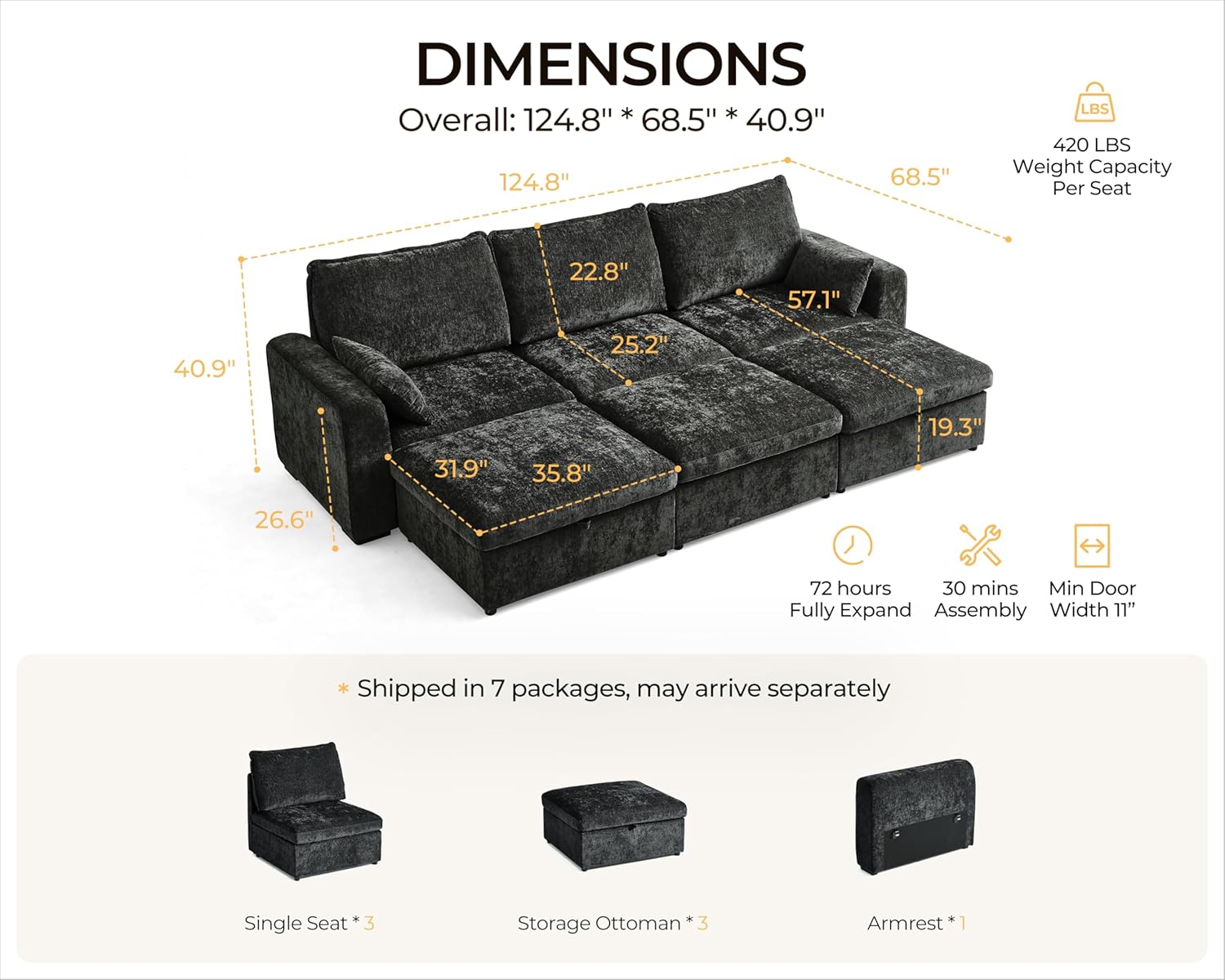 • 【Multiple Packages & Dedicated Support】 Your cloud modular sectional couch ships in 7 separate packages, which may arrive at different times. If you receive only some boxes, don’t worry—more are on the way! Need additional tracking details or assistance? We’re happy to help—just reach out! Our team is here to ensure you receive everything as expected and guarantee a smooth, hassle-free shopping experience with your complete satisfaction