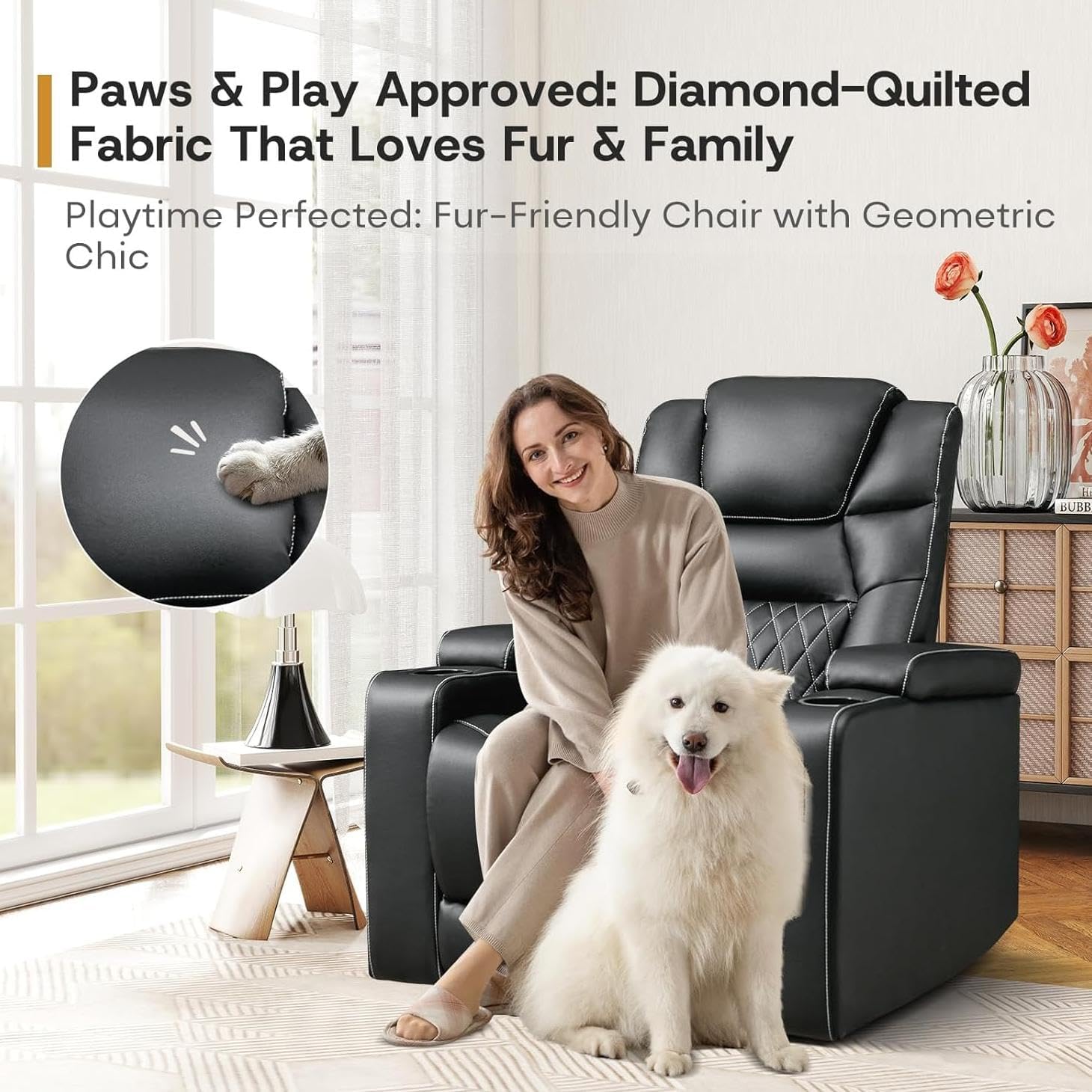 • Soft Breathable Faux Leather Recliner: This luxurious theater seating use of high-quality faux leather for upholstery material. With high-density foam to provide maximum comfort and stability, suitable for living room, bedroom. Faux leather with breathable microporous has good breathability, moisture absorption and sweat wicking ability, caring for the chair is quite easy while easier to wipe!
