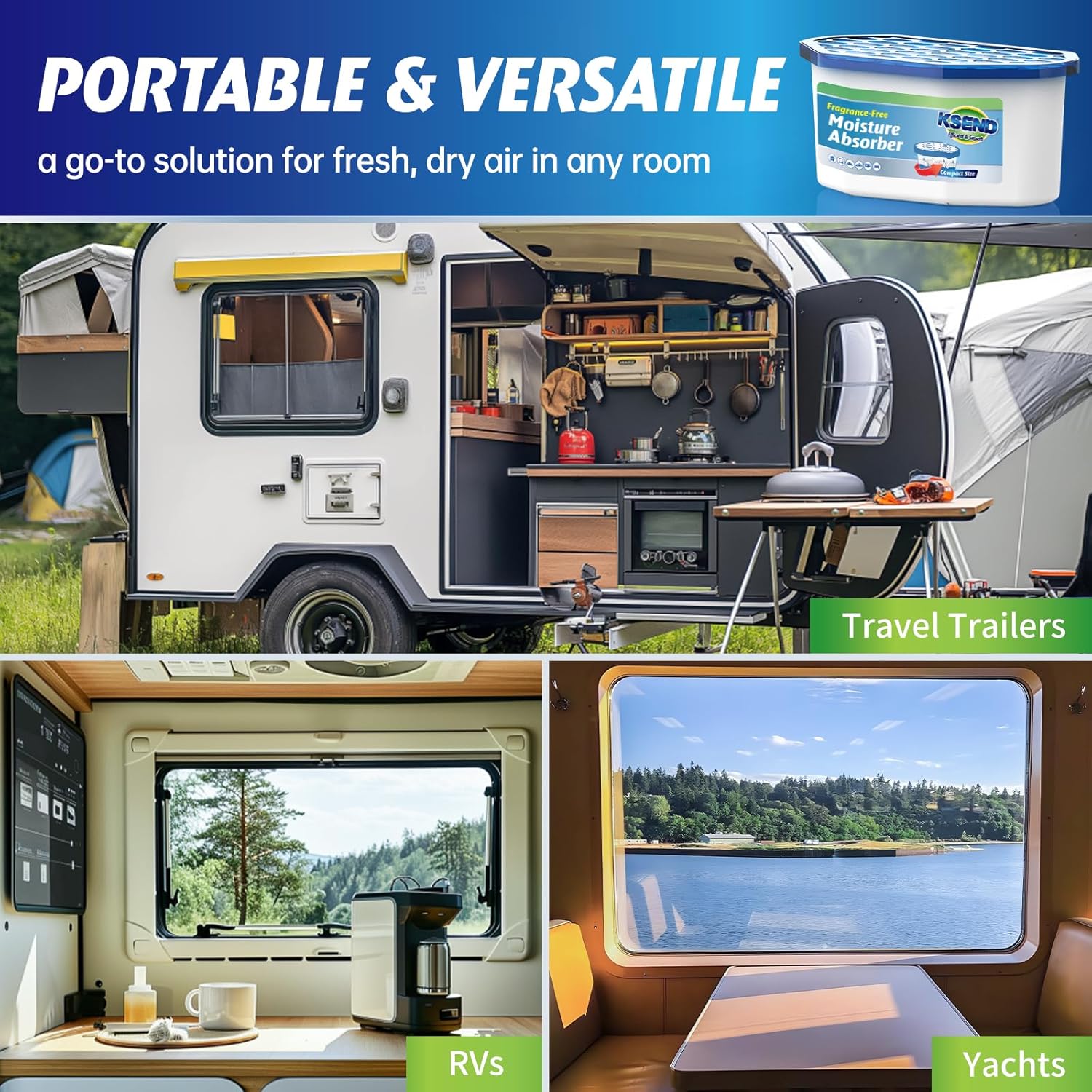 • LEAKPROOF DESIGN: Ksend moisture absorbers for rooms are equipped with a unique moisture-locking paper design. This innovative feature ensures that even if the boxes are accidentally overturned, the collected water will remain securely contained. You can confidently place them anywhere without worrying about water leakage.