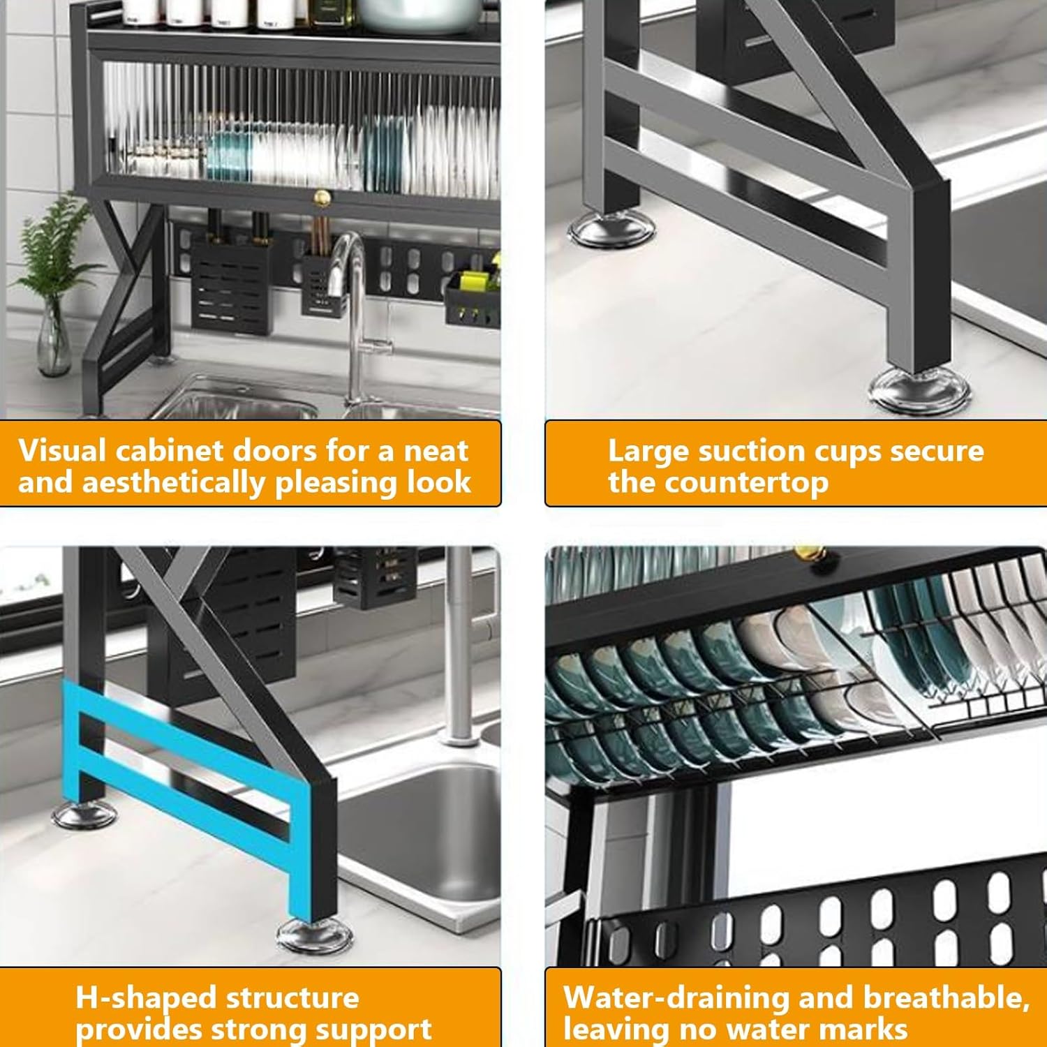 • Premium Materials, Durable & Rust-Resistant:Crafted from high-quality, durable materials, the drying rack kitchen over sink has a stable structure, allowing this over the sink dish drainer drying rack to easily hold heavy dishes. Its rust-resistant coating extends its service life, making it a reliable daily kitchen storage and drying solution.