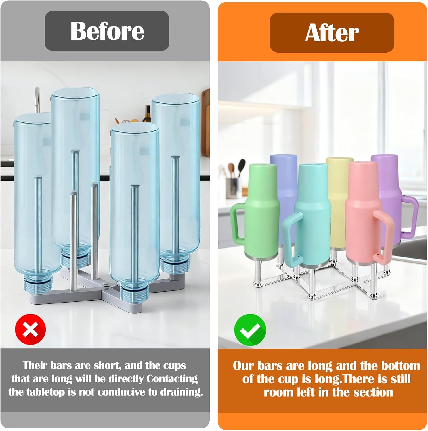 • 【Scratch-Free Drying Protection】 Equipped with silicone caps on each rod to prevent scratches on bottles,and cups. This bottle dryer rack ensures your items dry securely while keeping surfaces and accessories damage-free.