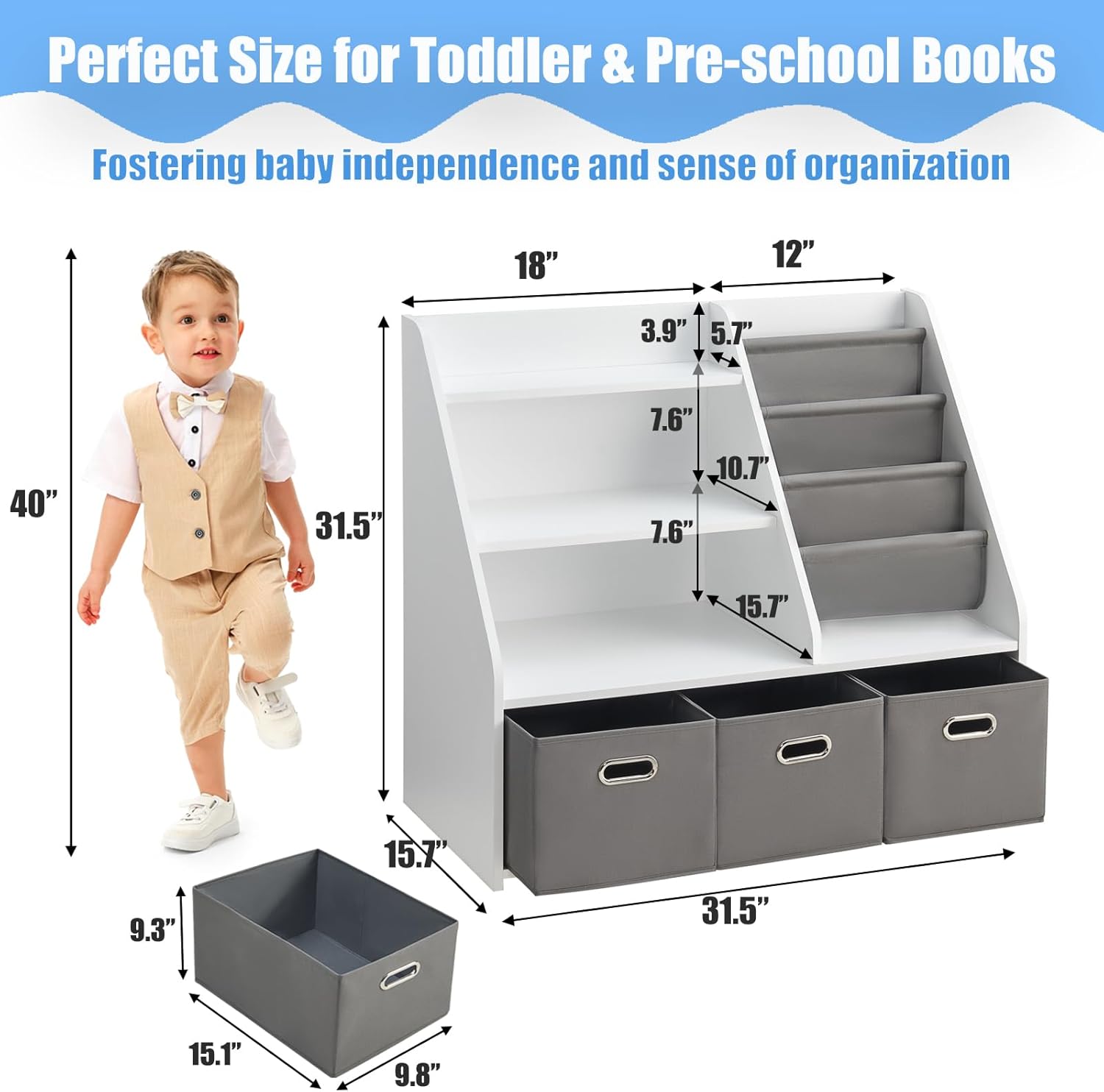 • ⭐️ [ All-in-One Storage Solution for Books & Toys] Features 3-tier fabric sling book rack, 3 open storage shelves, and 3 removable fabric bins — perfect for books, plush animals, blocks, dolls, art supplies, and more. Helps children develop good habits by making cleanup fun and simple.