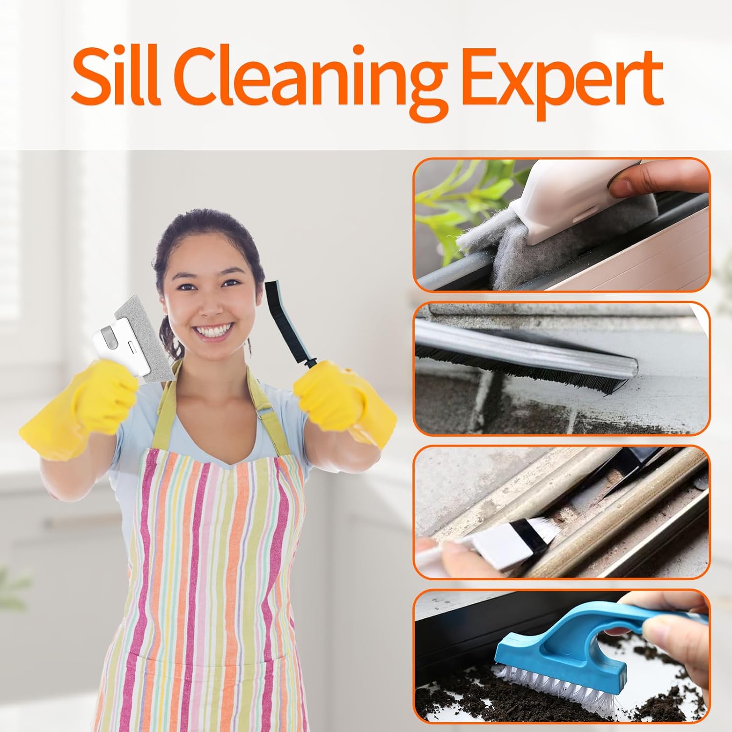 • 11PCS WINDOW CLEANING KIT - 11 specialized tools tackle every corner of your window door! Includes:3 Magic window cleaning tools​with 2 extra replaceable heads, 2 Gap brushes​for tight spaces, 1 Swan-shaped track brush with ergonomic grip and 2 small crevice brushes. Perfect for home: Window, door tracks, tile, floors, shutter, vents, and more!