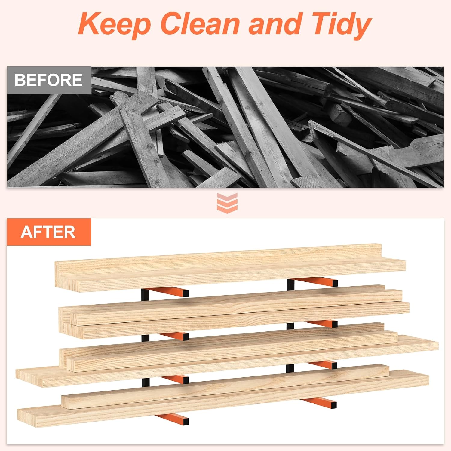 • Convenient and Space-Saving Storage Solution: The Utility Racks are designed to offer a reliable and compact storage option for organizing your wood, tools, and other items with ease. These wall-mounted racks provide both strength and convenience, making it a practical choice for keeping your belongings in order and easily accessible.
