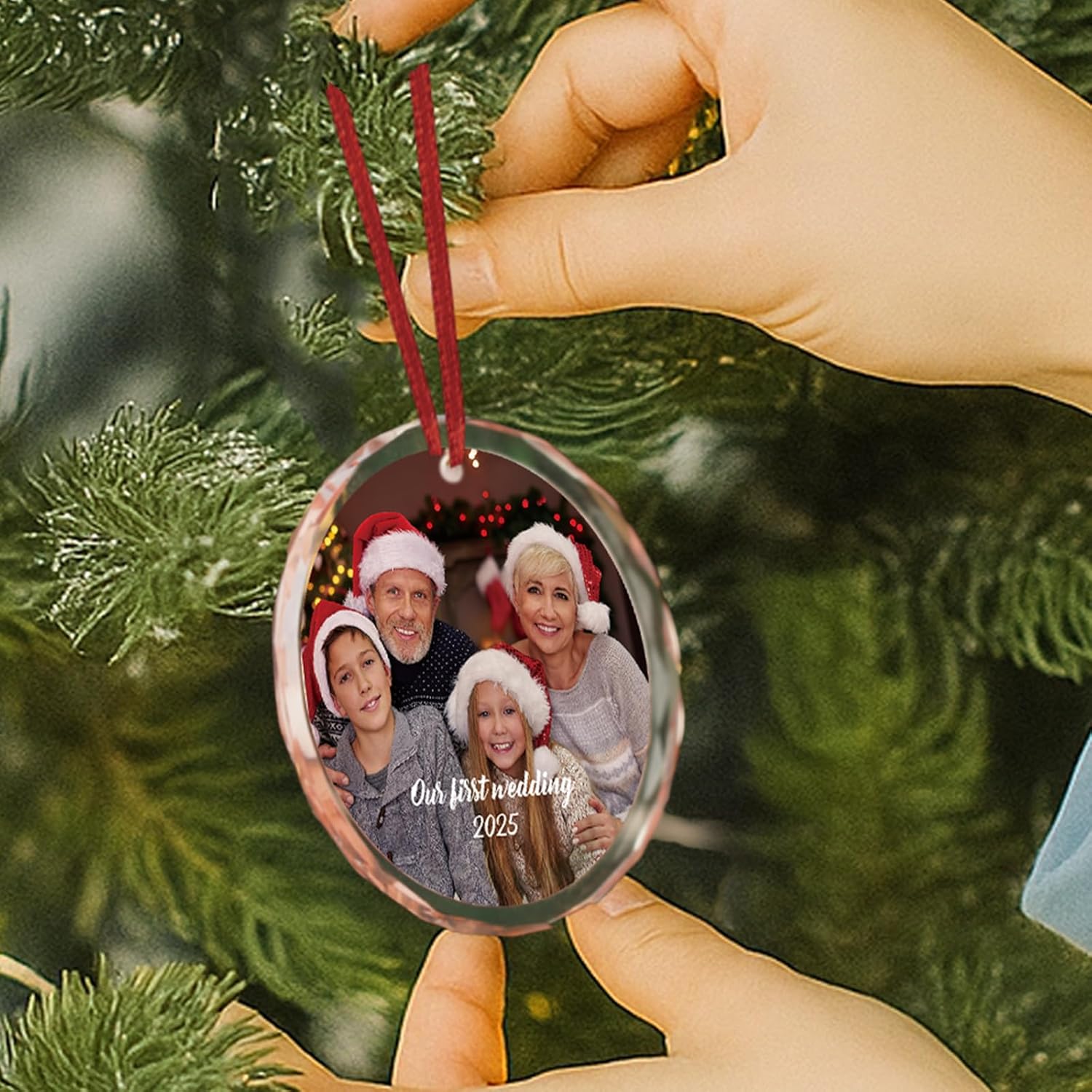 • 🎁 Custom Christmas Ornament: Celebrate a special family with a personalized ornament featuring your photo, names, and a meaningful date