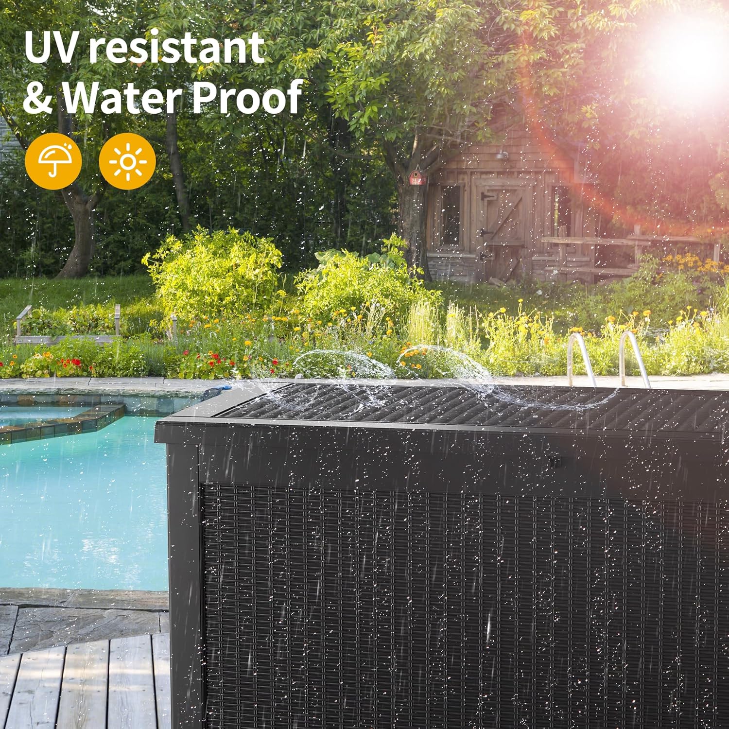 • Built to withstand any weather, our deck box is made from resin that offers waterproof, corrosion-resistant protection, and UV-resistant. No matter the season—be it scorching sun or heavy rain—this box will keep your items dry .