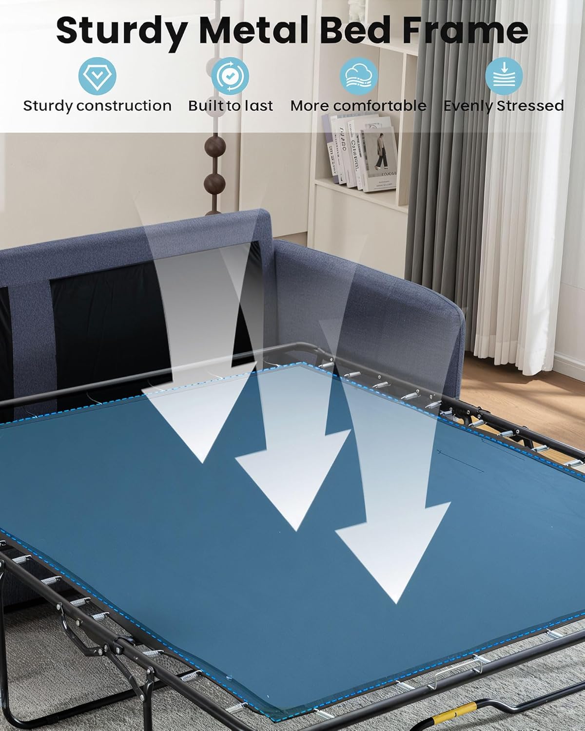 • Durable Solid Wood & Steel Frame – Built with a sturdy solid wood and steel frame, this queen sleeper sofa supports up to 400 lbs, ensuring long-lasting durability for daily use and overnight guests.