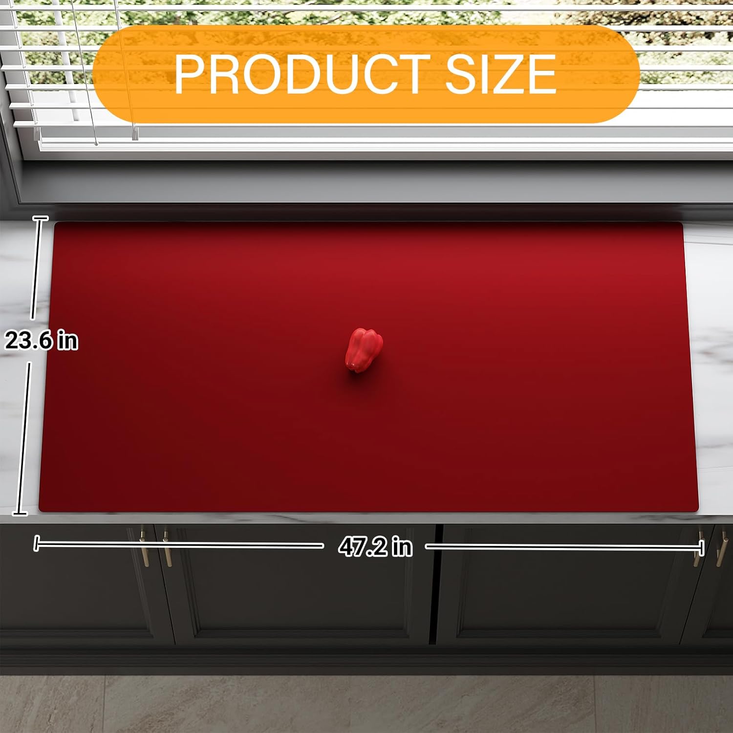 Quality Silicone Table Mat 47x24 Inch - High Heat Resistant (Lab Tested 482°F), Non-Slip Oil-Resistant Surface for Baking & DIY | Waterproof & Easy Clean (Red)