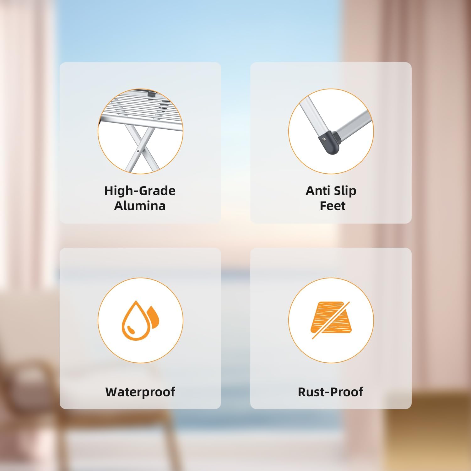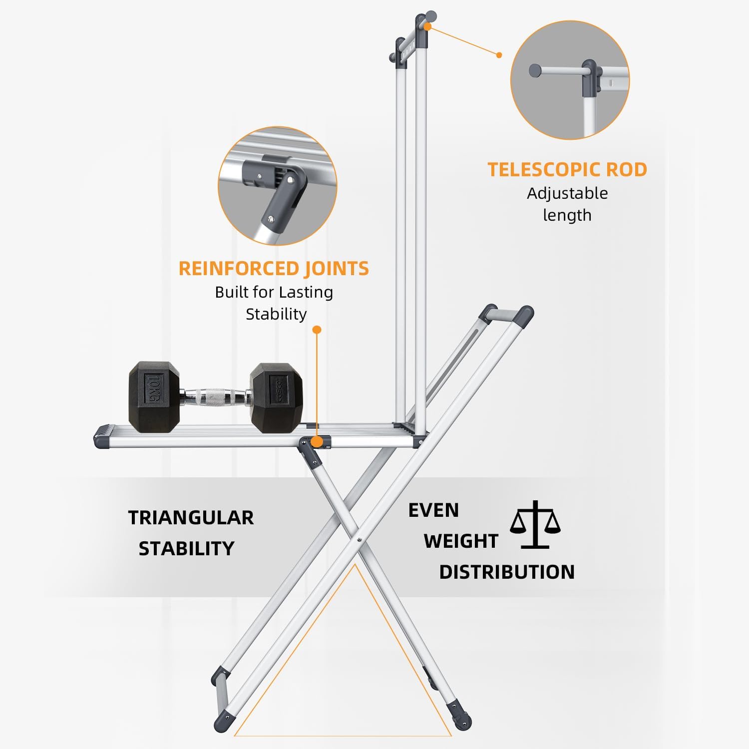 • Maximum Capacity and Stability: Featuring reinforced joints and triangle stability, this laundry drying rack ensures unmatched sturdiness while handling up to 60 lbs of laundry with ease. Designed with a durable aluminium frame for long-lasting use & Non-slip feet to provides stability.