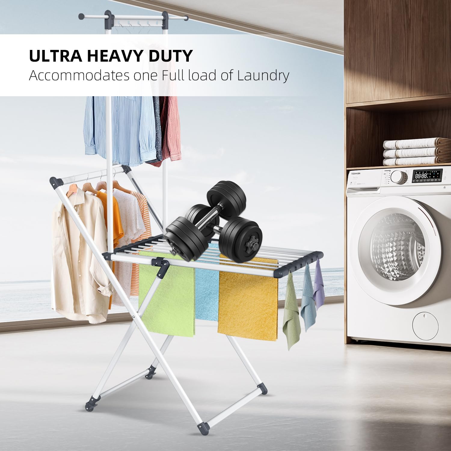 • Fast and Effortless Setup: No assembly required! This drying rack clothing foldable unfolds in just 1 second for immediate use. Perfect for quick laundry drying & your laundry room organization.